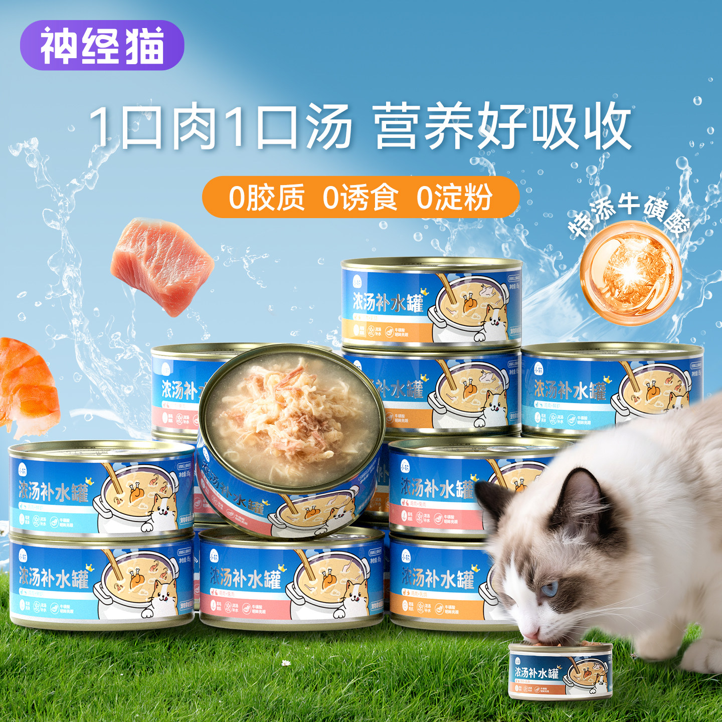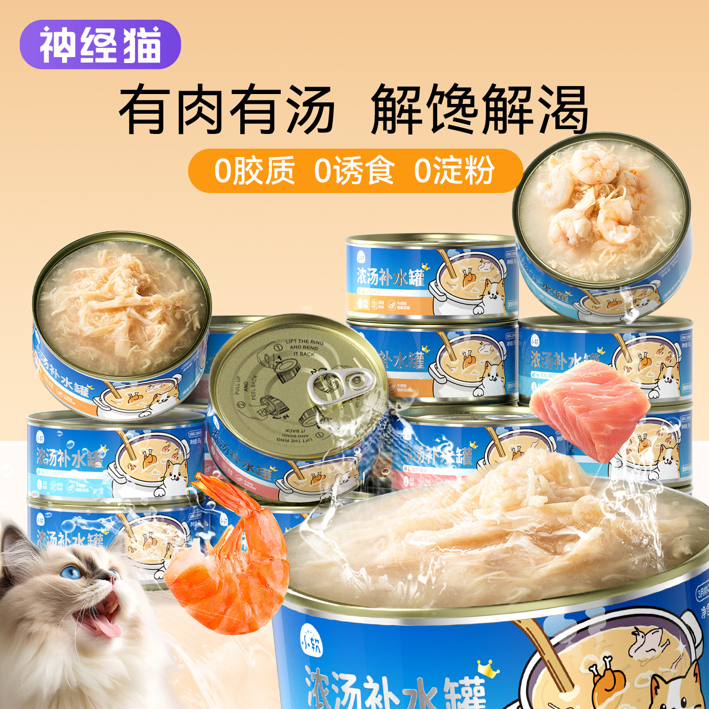 📚 猫罐头猫咪零食鸡丝补水汤罐宠物增肥发腮成幼猫补充营养非主食罐