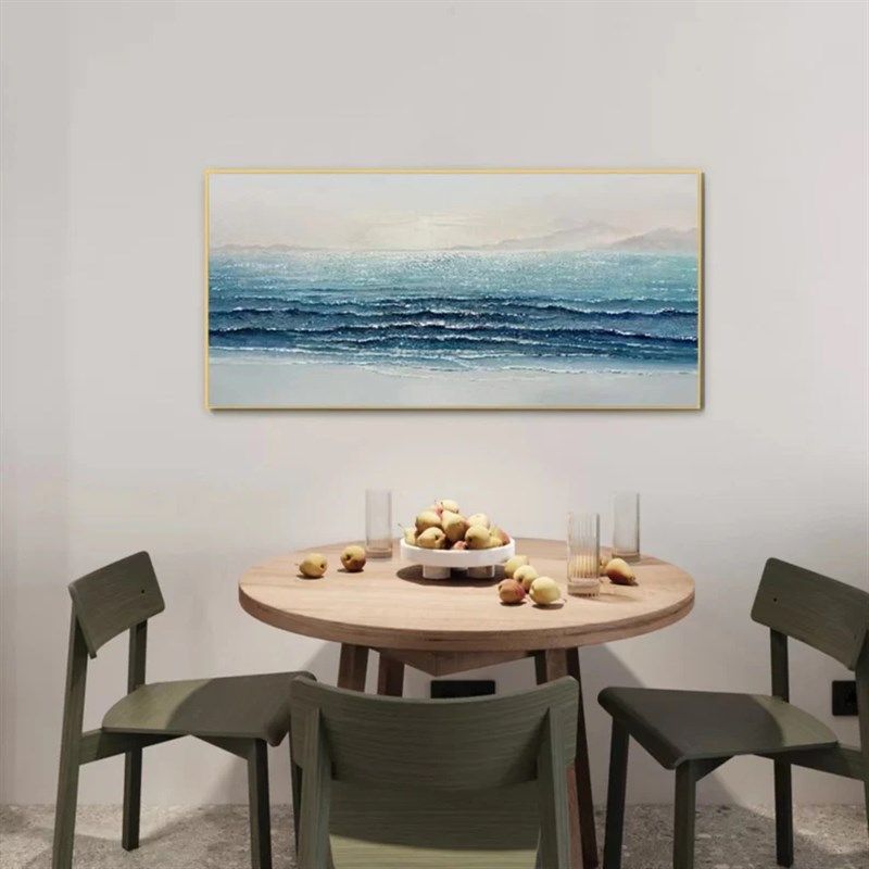 📚 大芬村手绘油画现代简约客厅壁画大海风景肌理立体挂画横版装饰画