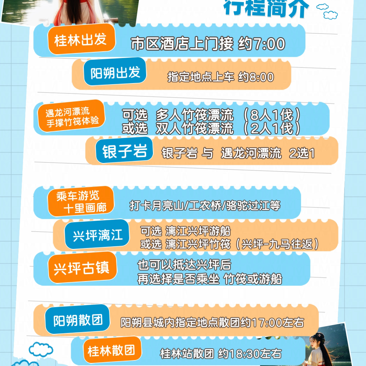 📚 8人小团 桂林阳朔旅游漓江游船遇龙河竹筏漂流杨堤兴坪纯玩一日游