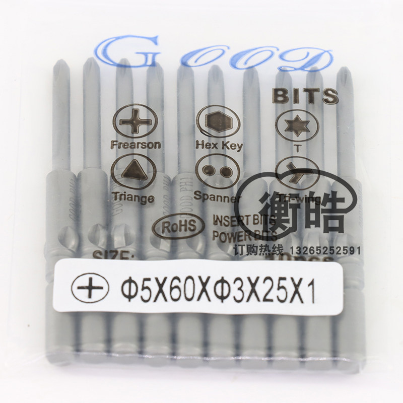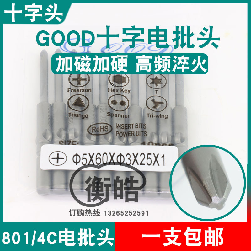 📚 GOOD十字电批头5*60*3.0*25*PH1加磁S2钢材801电动螺丝刀头起子头
