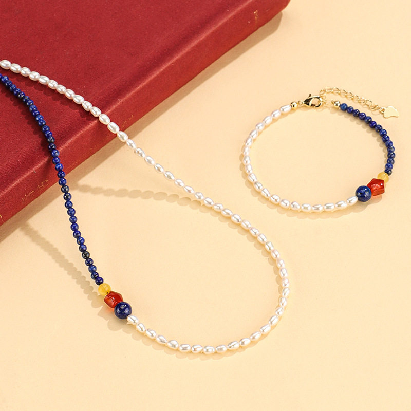 📚 【平步青云】新中式青金石珍珠手链项链女百搭高级感手串首饰项饰