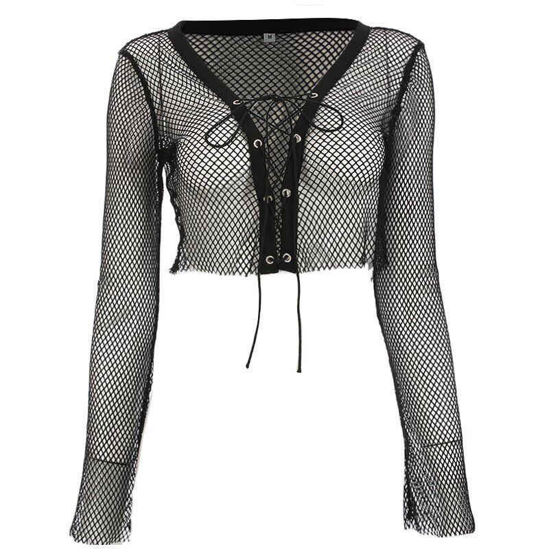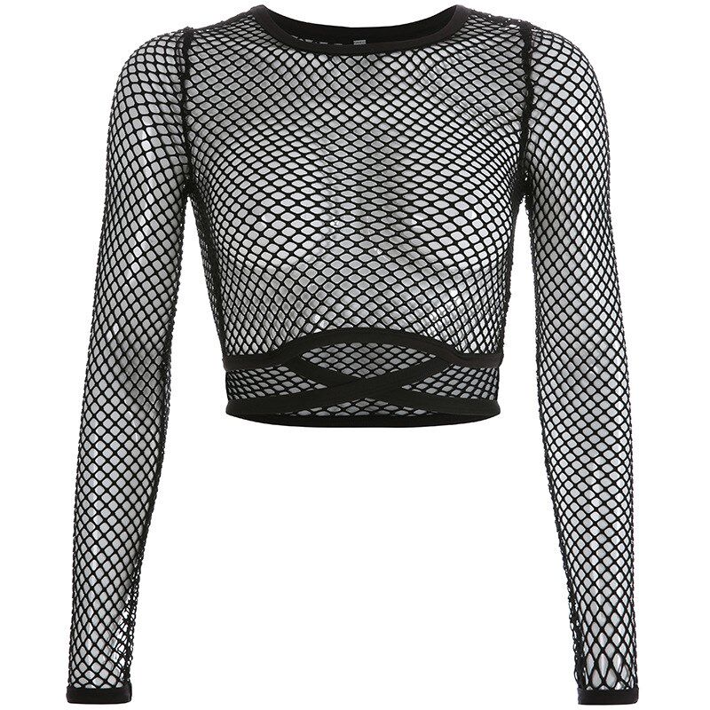 📚 2025 Fashion Sexy Mesh Seethrough Womens Tops Long Sleeve Ti