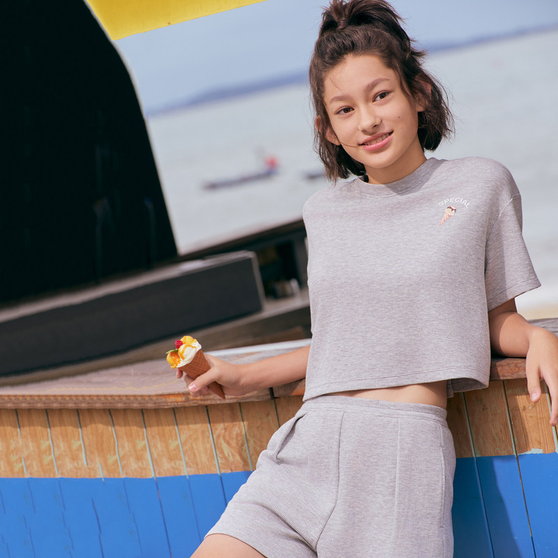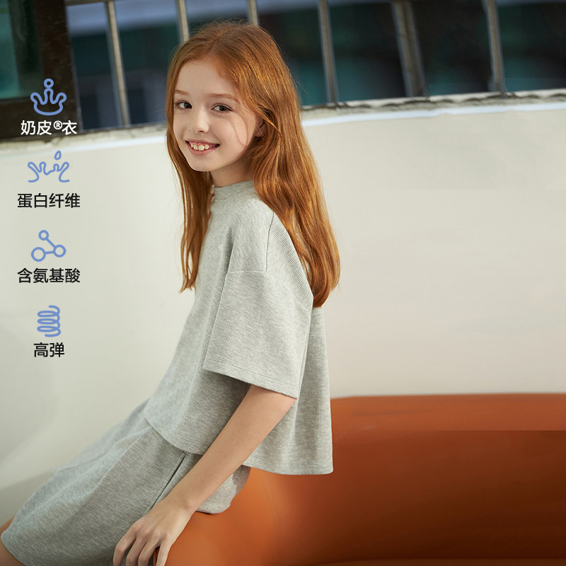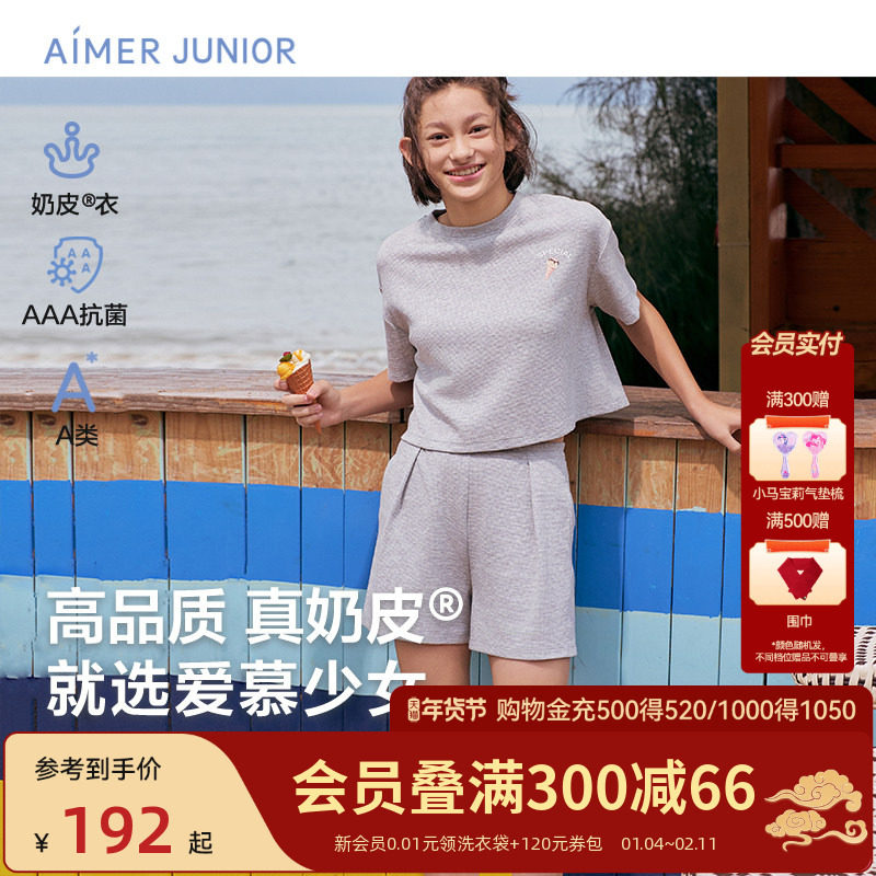 📚 爱慕少女3A抗菌套头短袖上衣三分裤女童女孩户外A类春夏新|奶皮衣