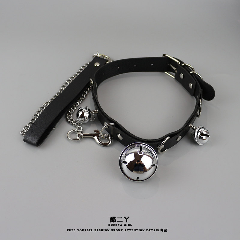 📚 加长铃铛项圈男牵引绳成人项链choker男生情调大号颈带小狗脖环