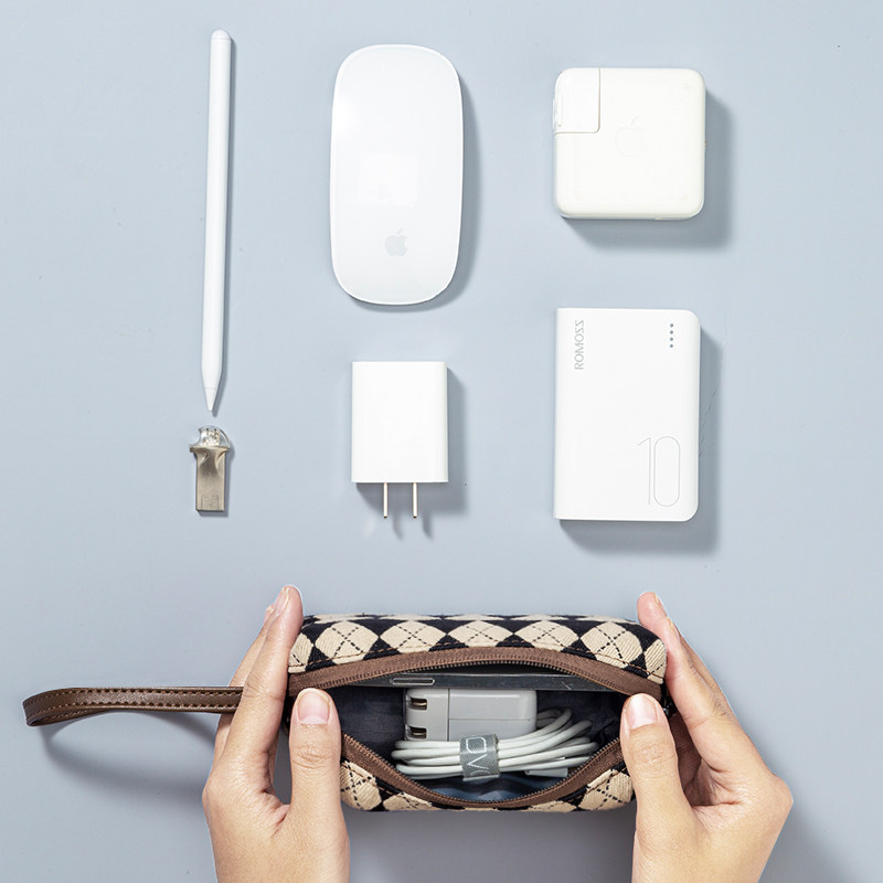 📚 2025适用苹果Macbook电脑电源鼠标收纳包联想华为惠普华硕充电器移动硬盘耳机数据线充电宝整理U盘收纳袋菱格