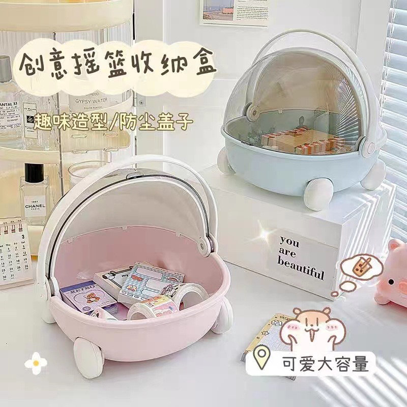 📚 手提桌面摇篮收纳盒子棉花娃娃可爱宿舍好物零食筐bjd ob11婴儿车