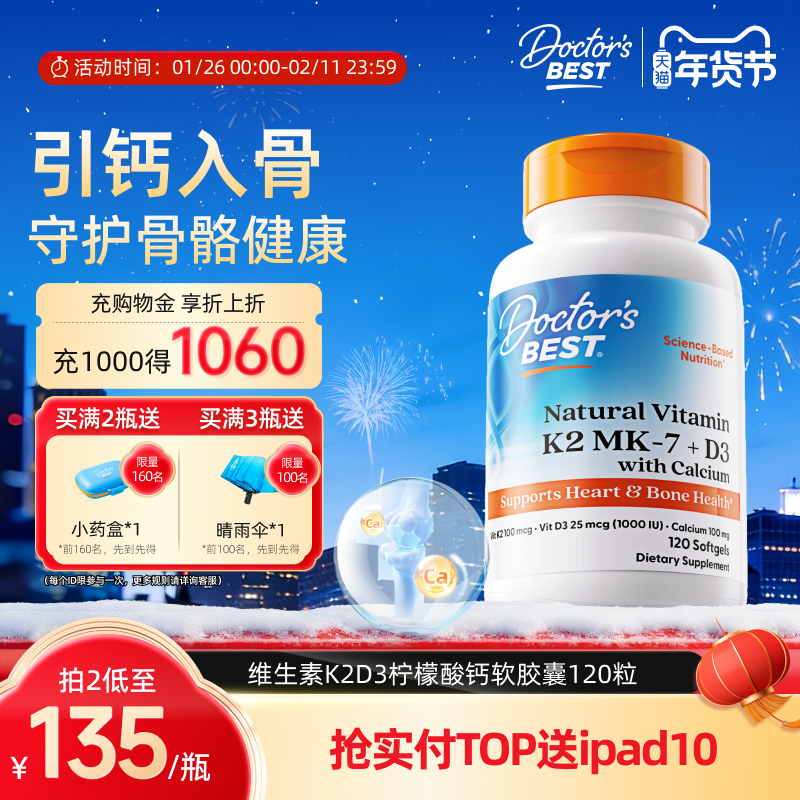 📚 Doctor's Best多特倍斯金达威维生素K2+D3柠檬酸钙片液体钙