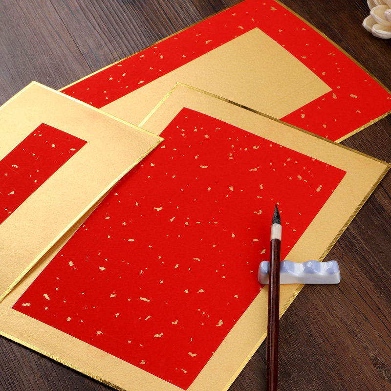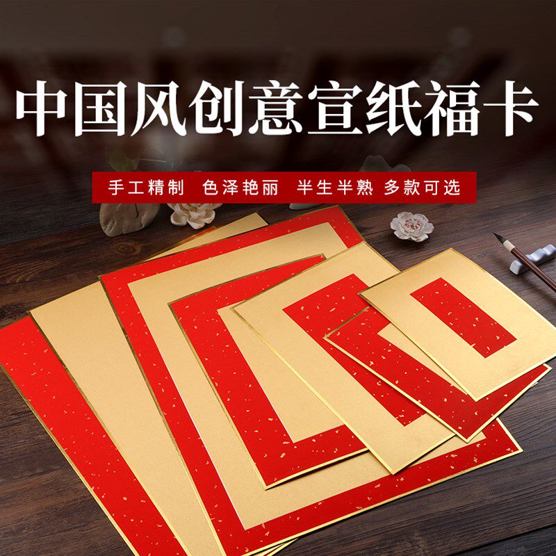 📚 A4A5中国风创意福卡宣纸空白手写福字宣纸卡纸万年红洒金宣纸书法作品纸画框卡纸宝宝脚印足印周岁纪念摆台用