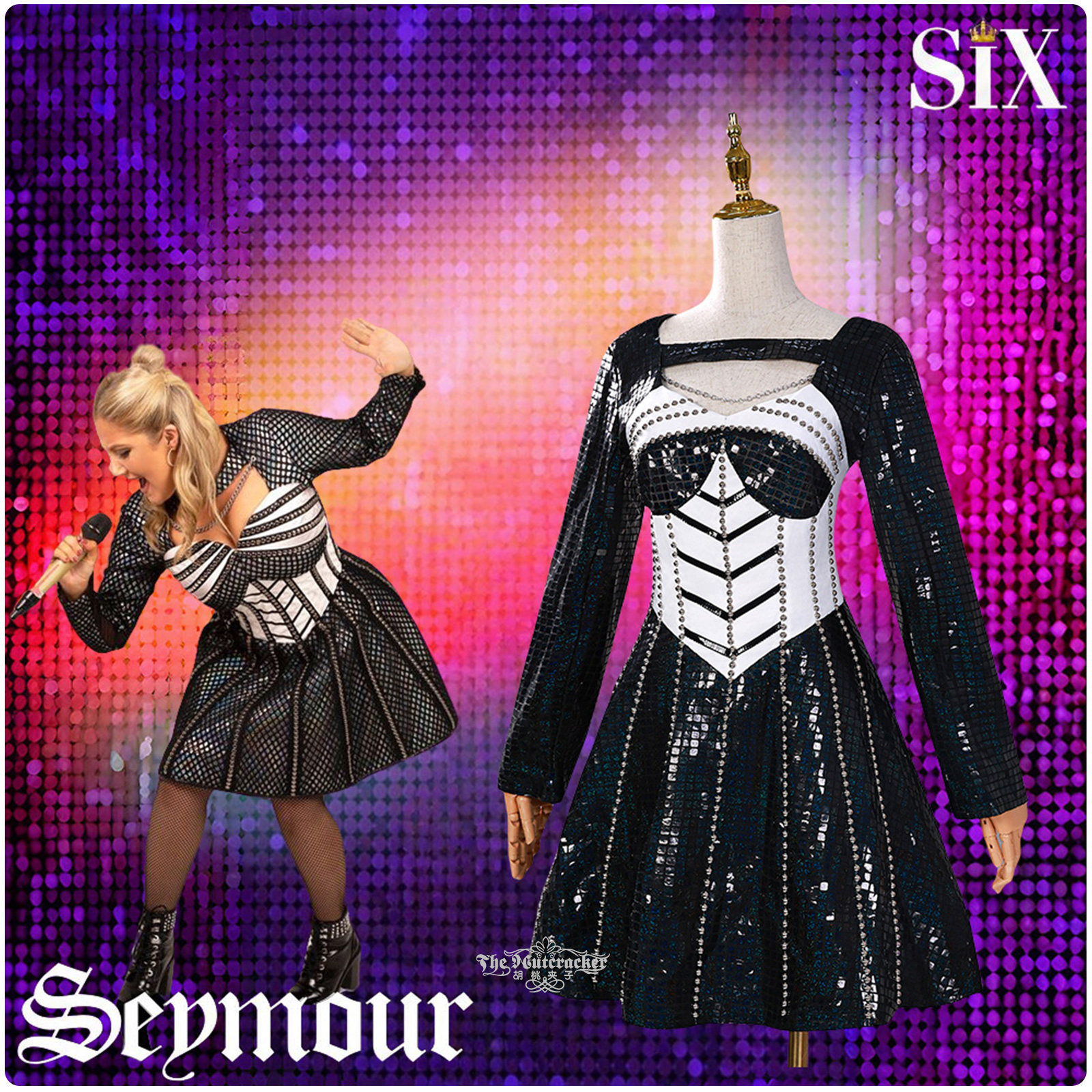 📚 现货六个皇后音乐剧six珍·西摩简·西摩黑色裙子表演连衣裙cos服