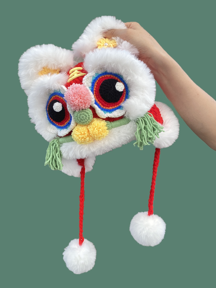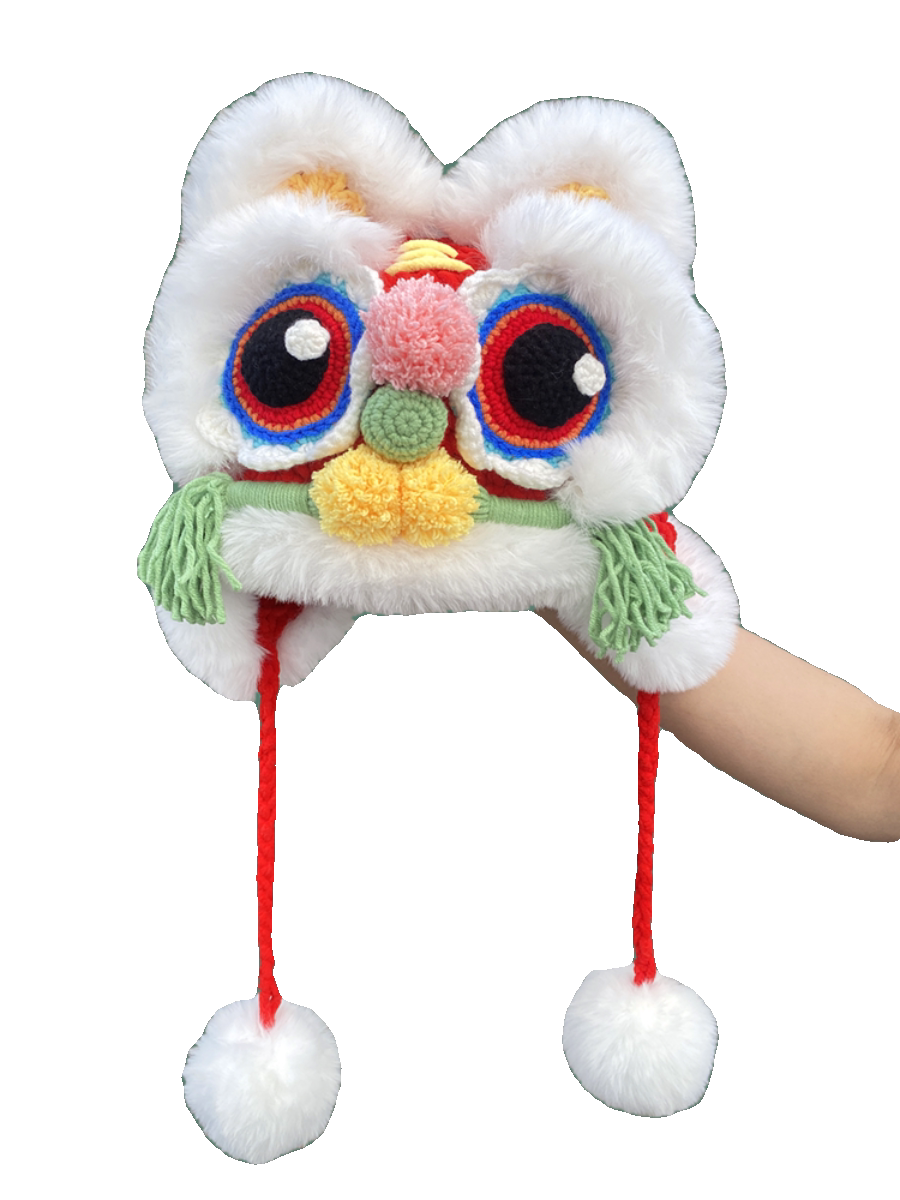 📚 手工编织保暖虎头帽儿童秋冬毛线护耳帽子亲子传统舞狮帽教程工具