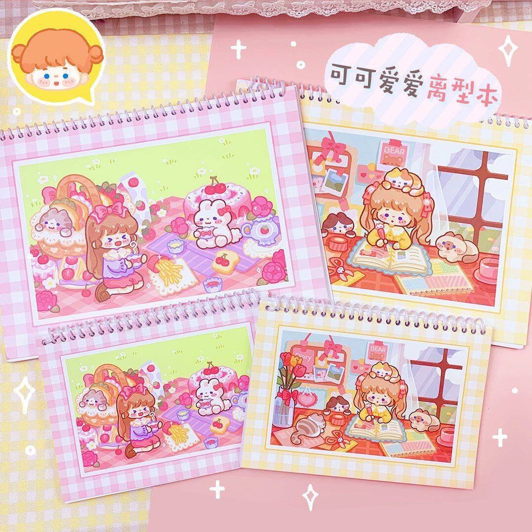 📚 【现货】调调手帐萌物社A5B5双面四季小喵离型本加厚分装胶带收纳