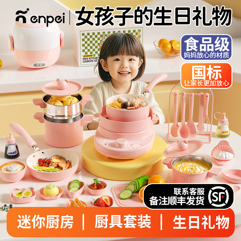 📚 女孩的生日礼物迷你小厨房真煮全套真实版做饭教具食品级厨具套装