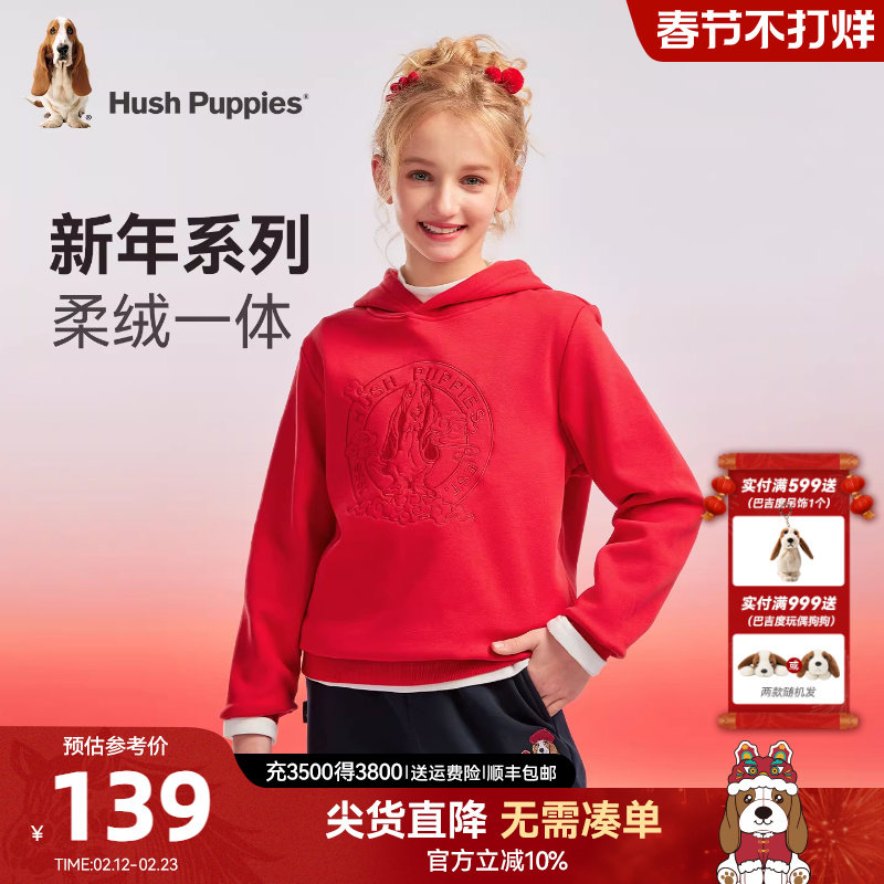 📚 暇步士童装儿童连帽卫衣25秋冬新品男童一体绒大童新年装女童帽衫