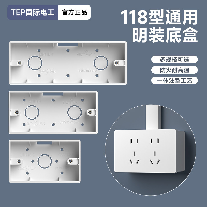 📚 国际电工118型二位明盒接线盒明装底盒通用开关插座三四位明线盒