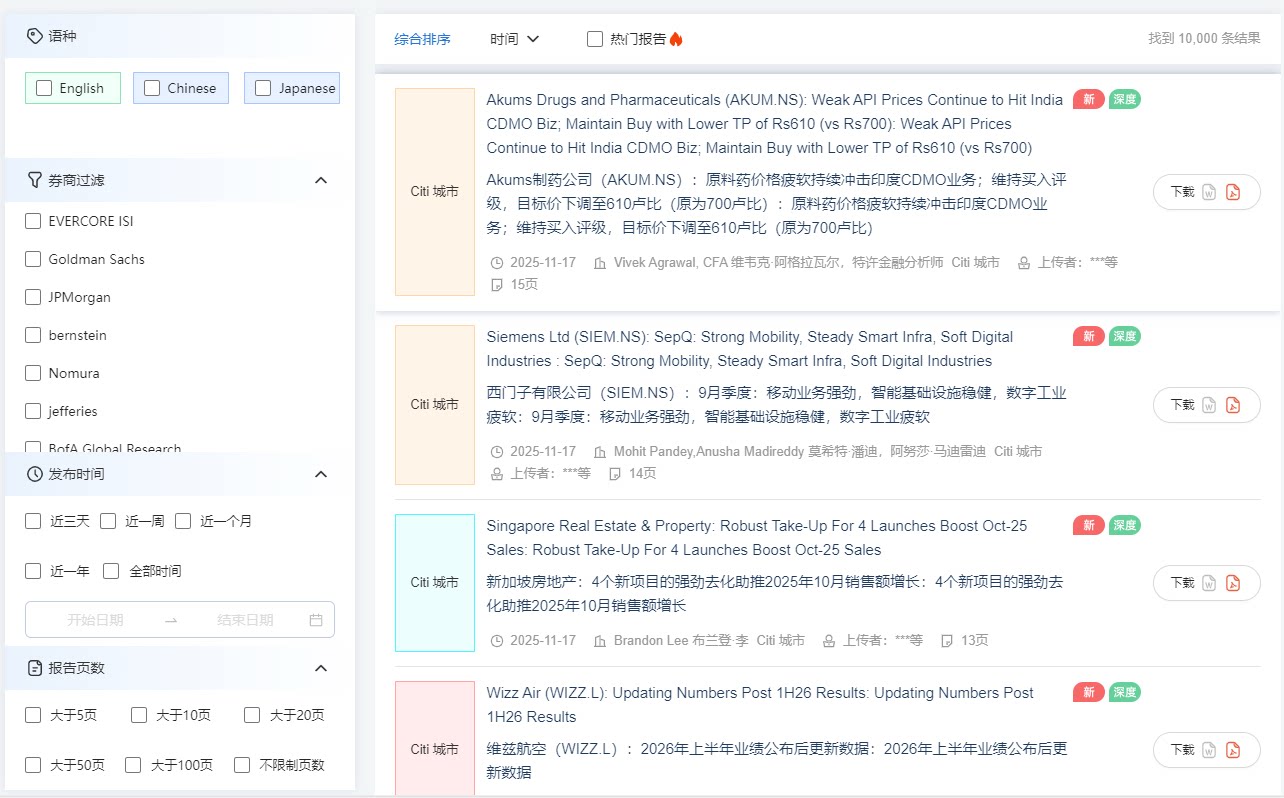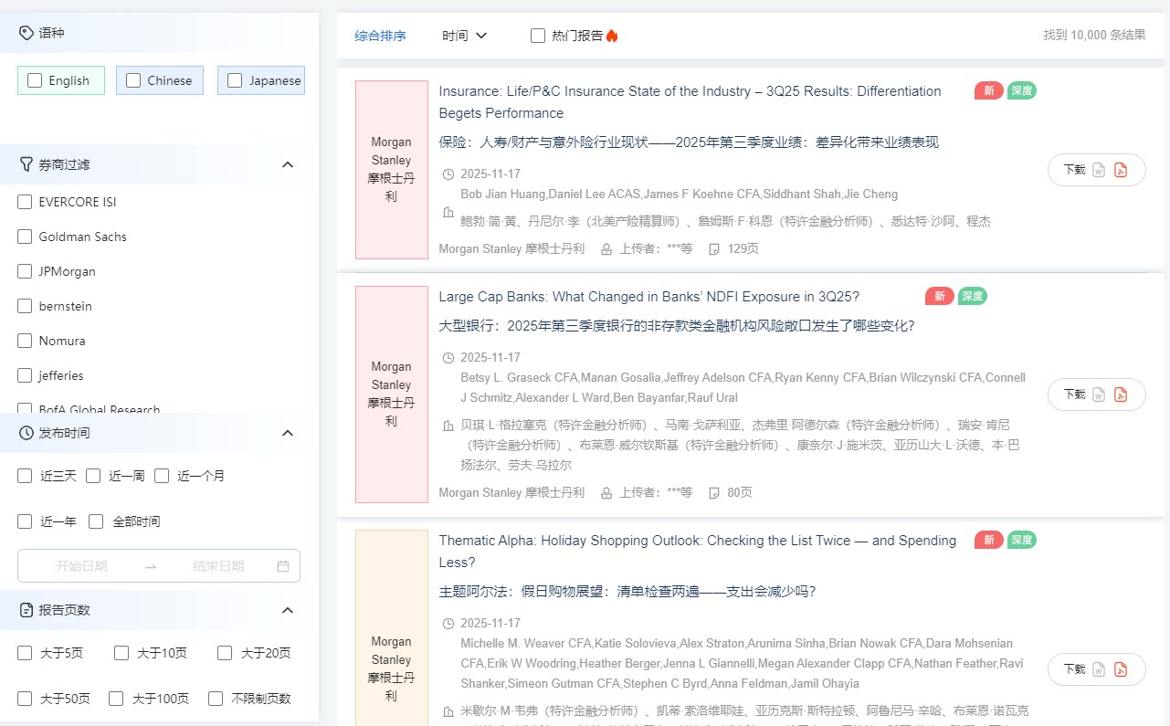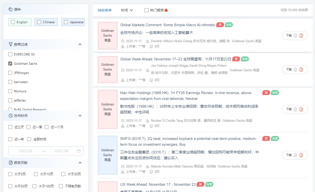 📚 摩根高盛花旗汇丰标普等外资投行研报实时更新