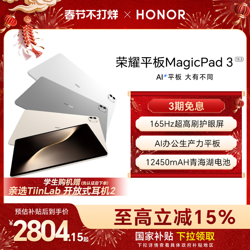💥【政府补贴15%】荣耀平板MagicPad3:学习办公新宠,官方旗舰店爆款来袭!