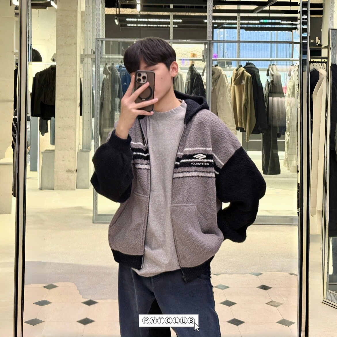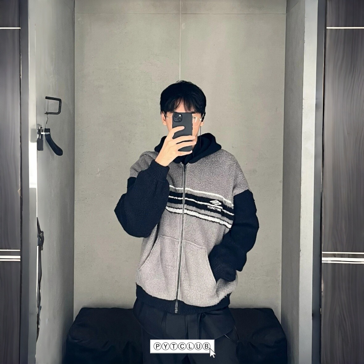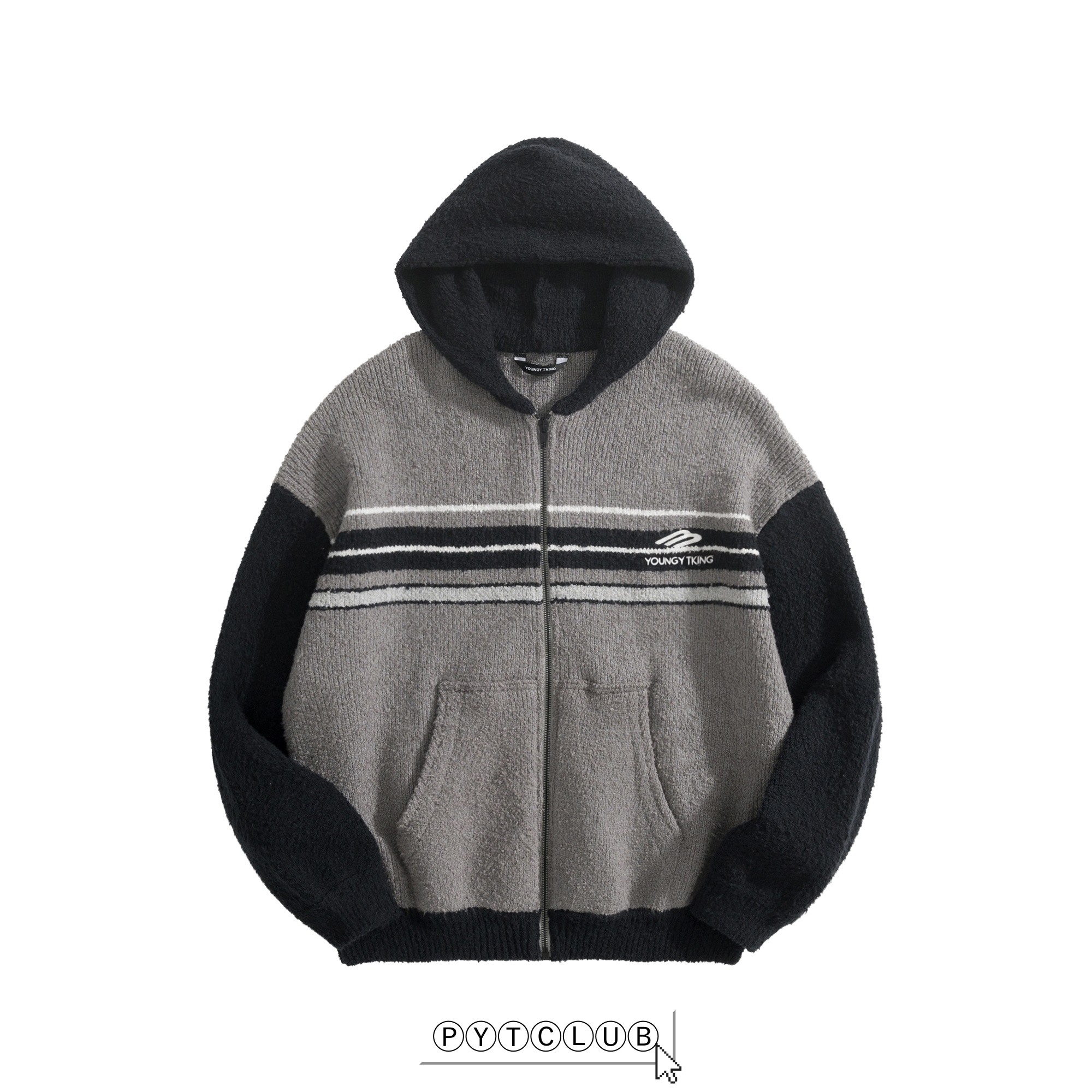 📚 FW25 YOUNGYTKING Sweater3B字母黑灰拼色针织连帽毛衣男女"现货"