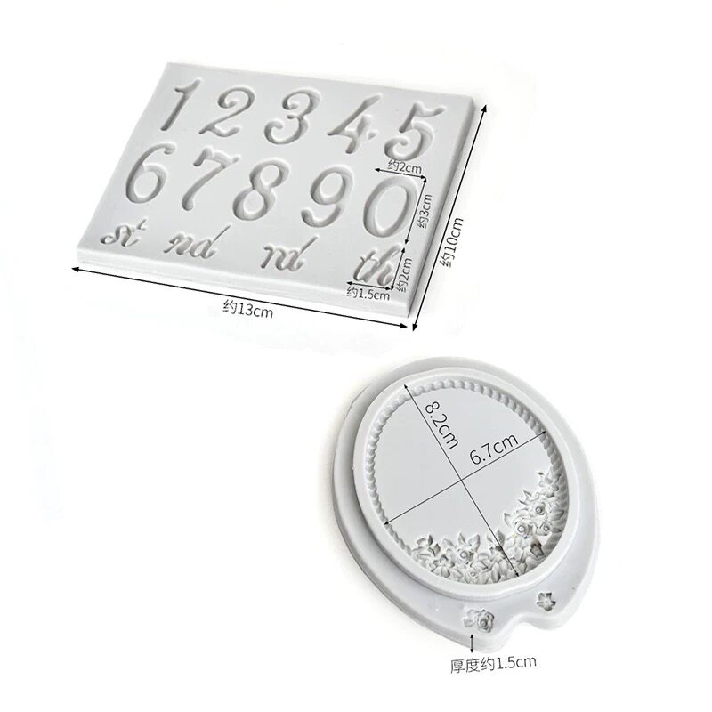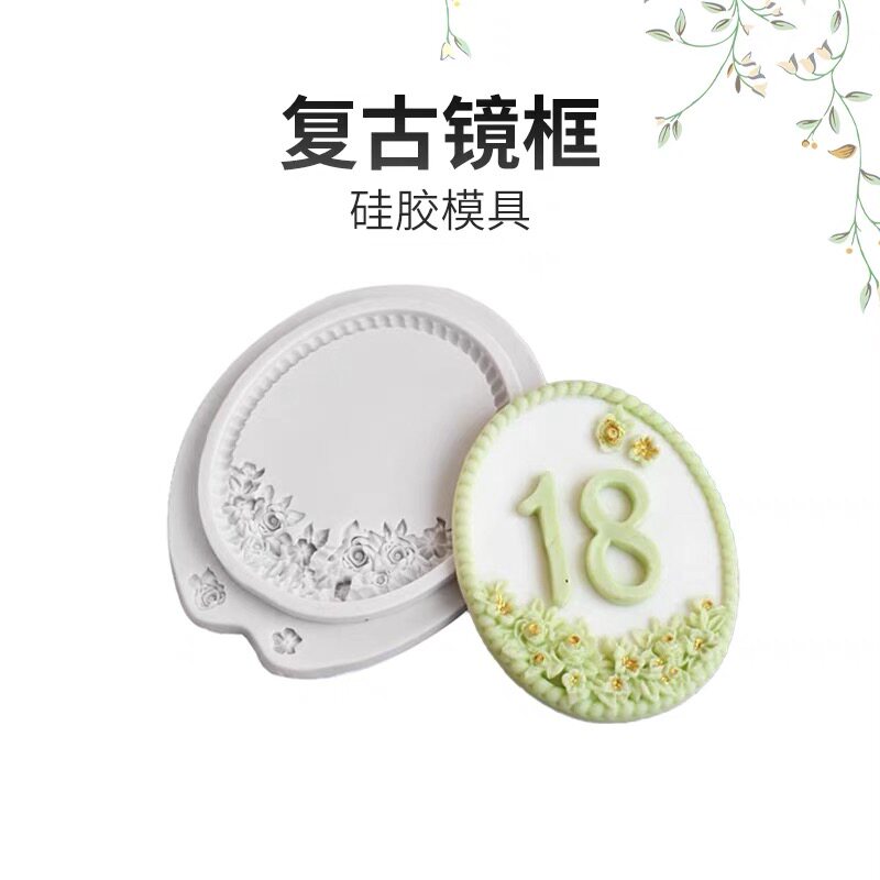 📚 复古镜框硅胶模具数字0-9th浮雕花边相框翻糖巧克力蛋糕烘焙装饰