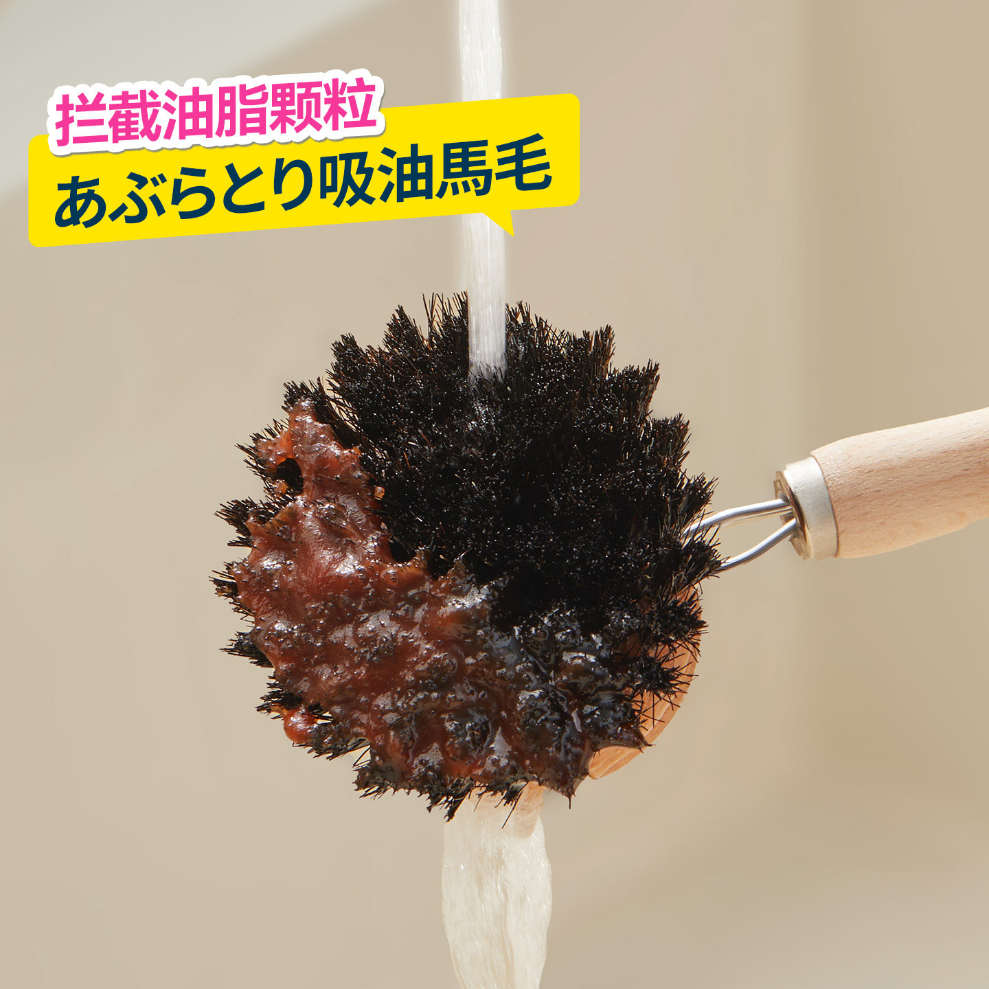 📚 日本刷锅神器天然锅刷马毛刷清洁刷厨房用品吸油不伤锅刷锅刷子