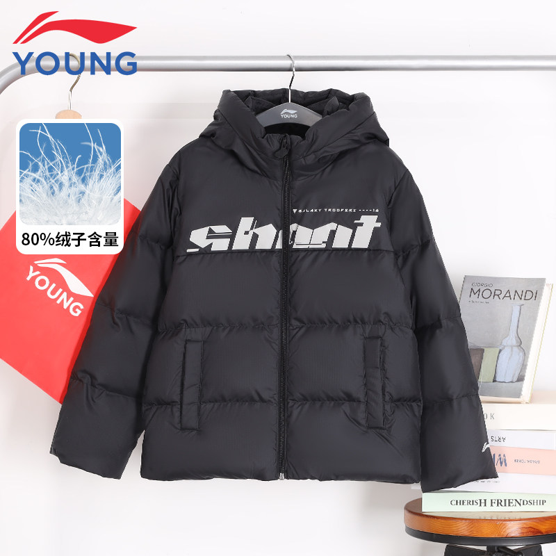 📚 李宁童装儿童羽绒服男童大童26冬季新款短款宽松保暖连帽鸭绒外套