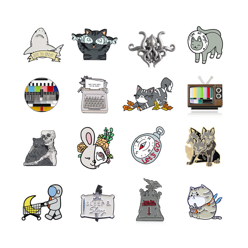 📚 时尚大气灰色系徽章 猫咪 兔子 太空人 复古电视机 传真机胸针