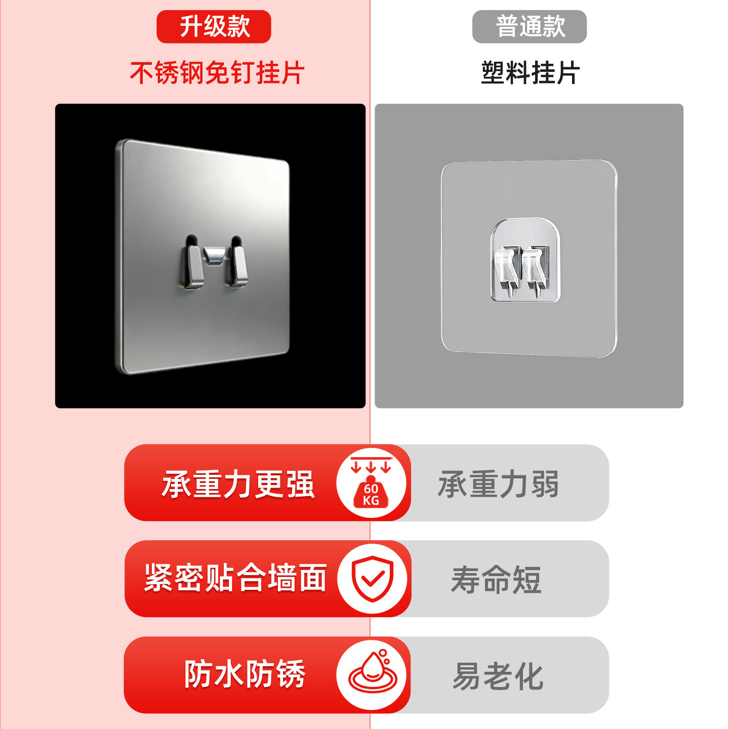 📚 网格钢线卡挂扣底托挂片暗挂U型卡槽置物挂钩免钉打孔304不锈钢片