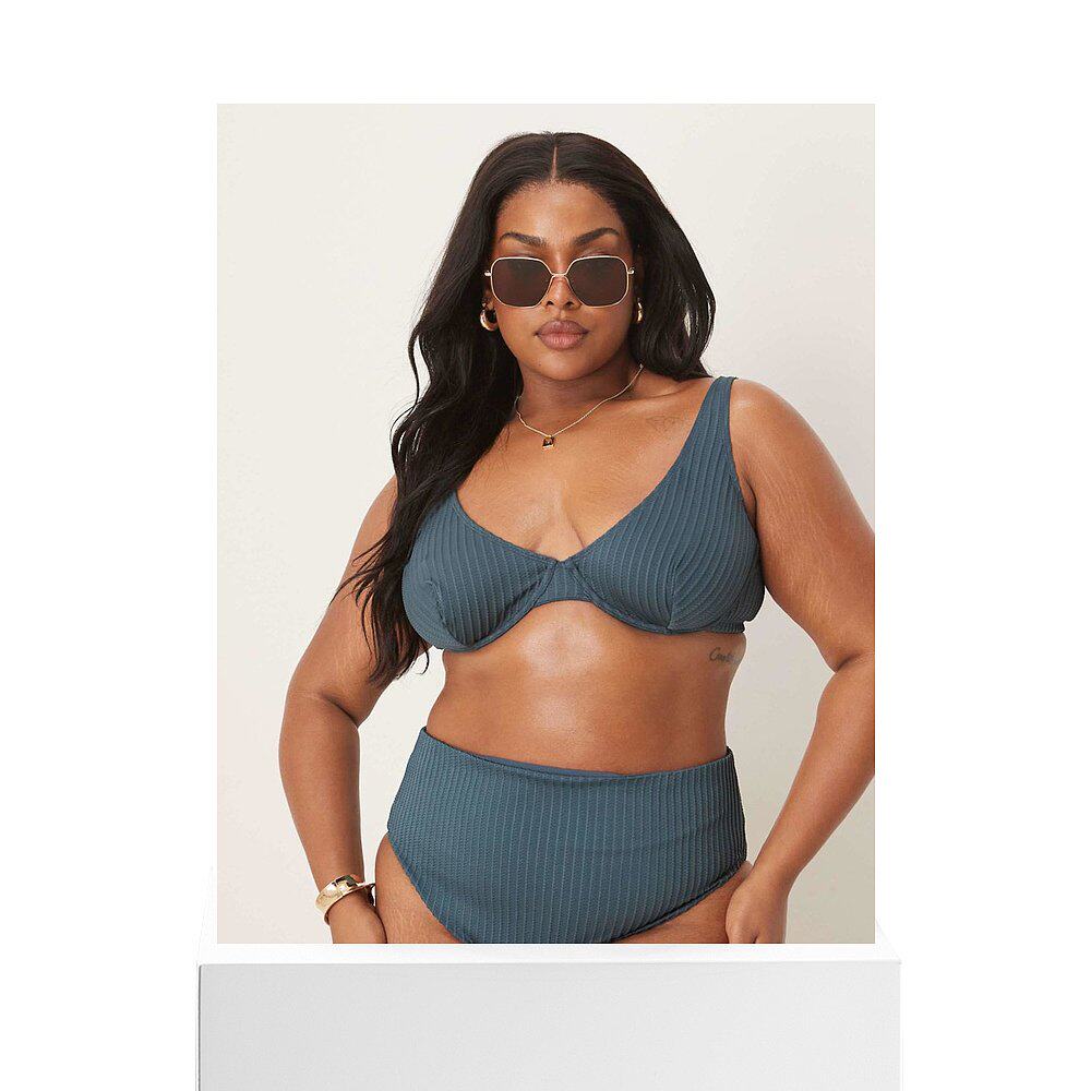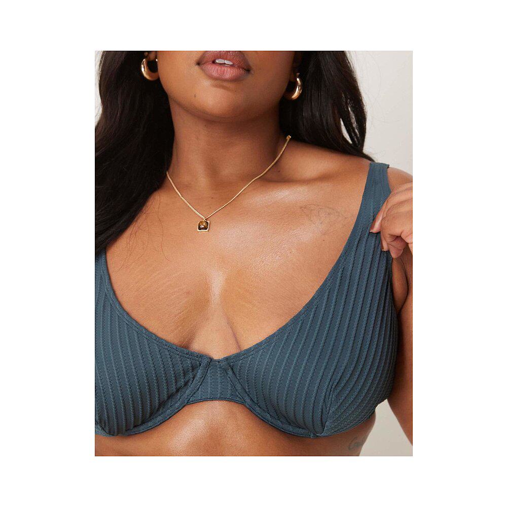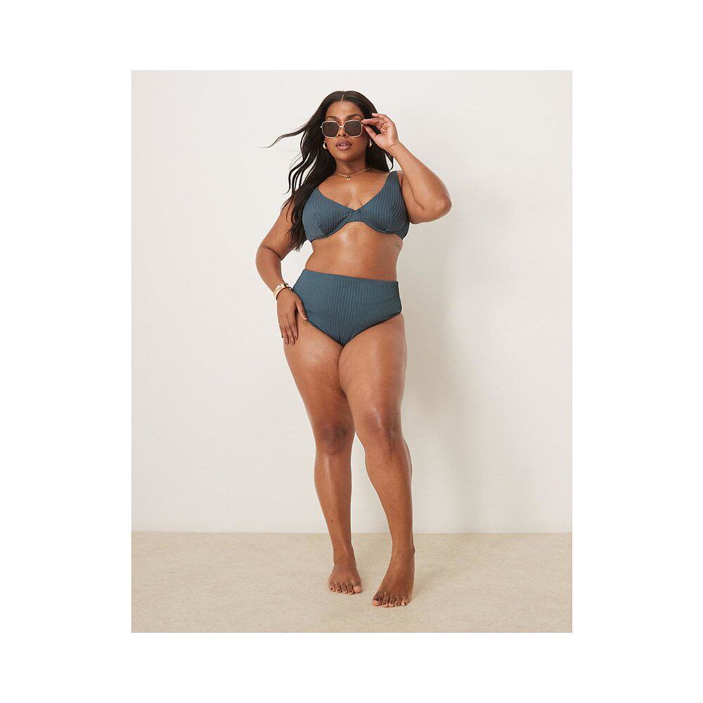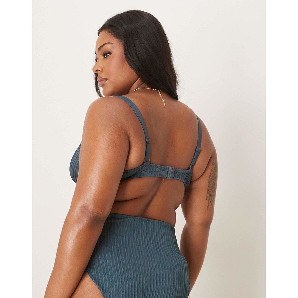 📚 1h可退 潮奢 ASOS 女士 Curve Riddy 设计罗纹石板色蓝色比坚尼上