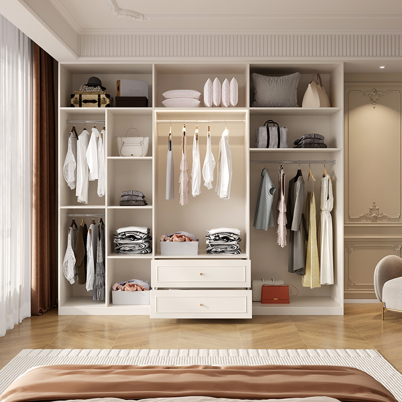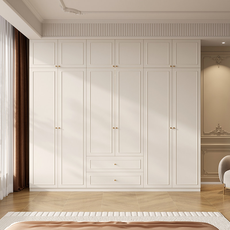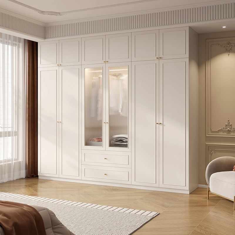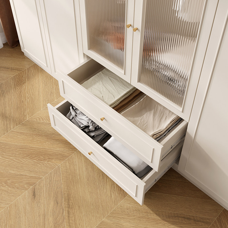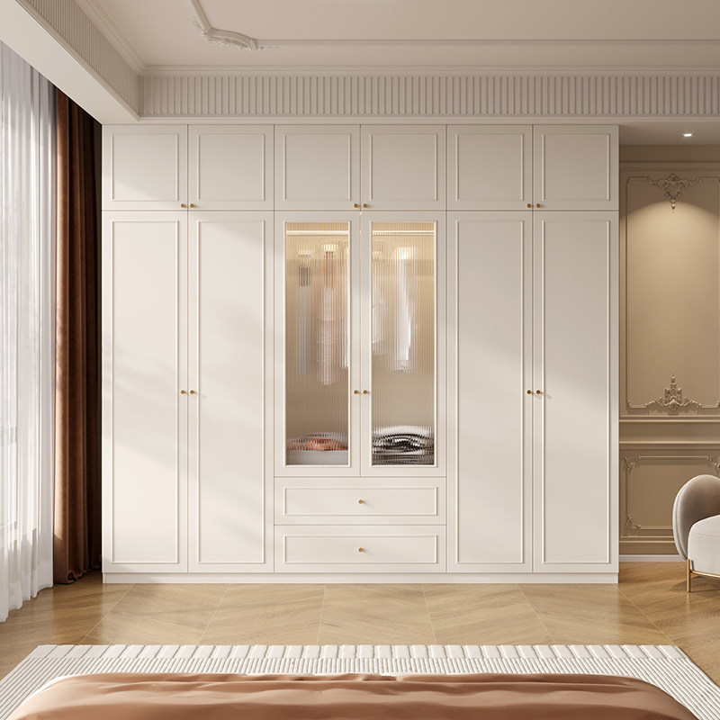 📚 法式奶油风衣柜家用卧室组合玻璃门衣橱靠墙收纳柜子可定制储物柜