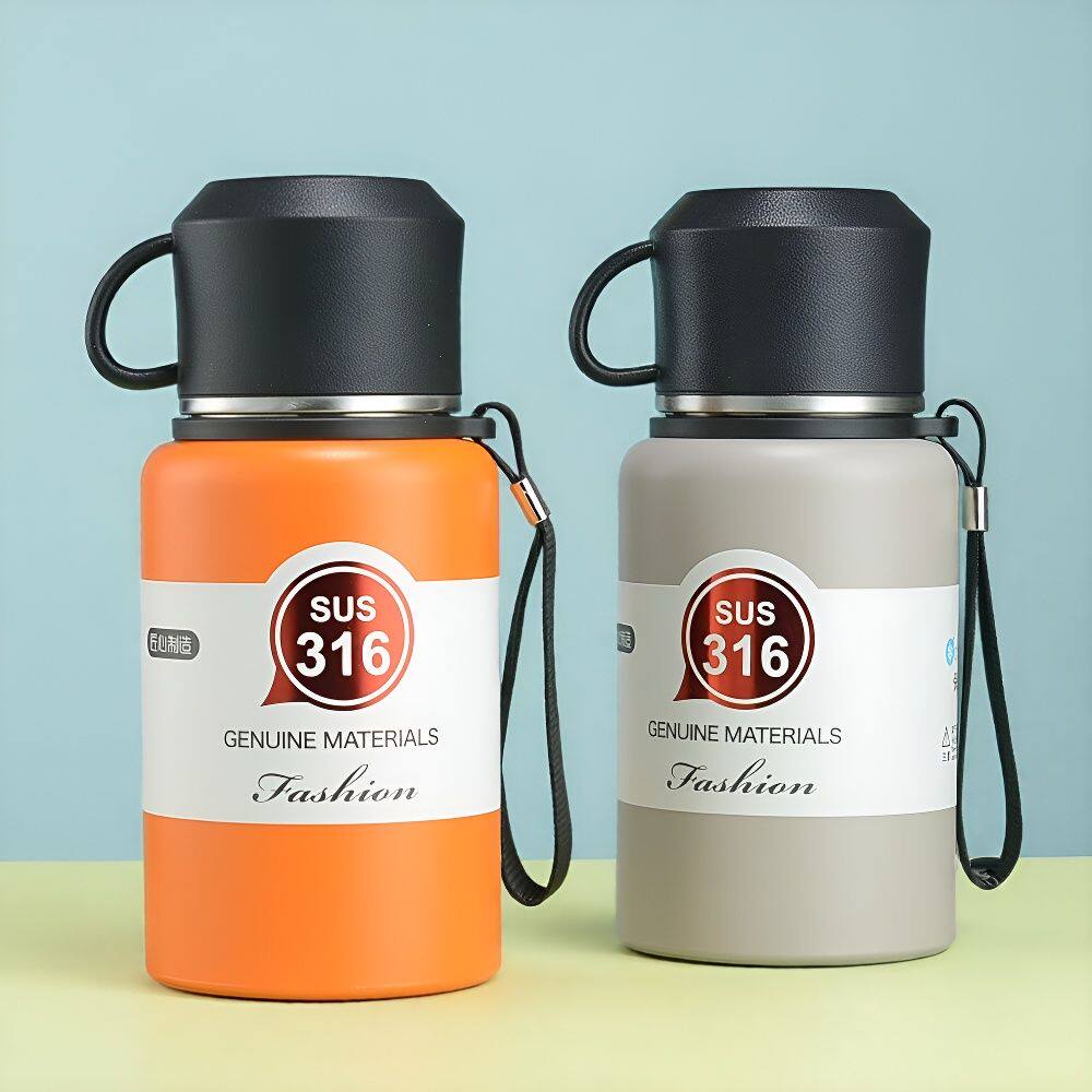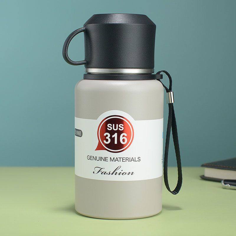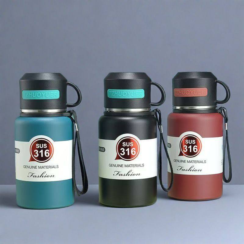 📚 大容量316不锈钢保温杯户外登山旅行壶双层真空手提保温杯矮胖壶