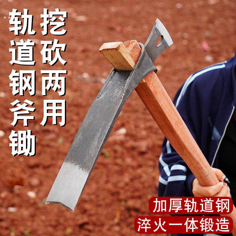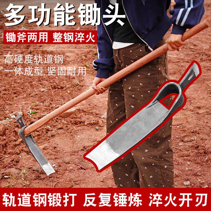 📚 加厚手工锻打挖笋专用锄头户外挖春笋开荒挖桩锄斧两用木柄锄头