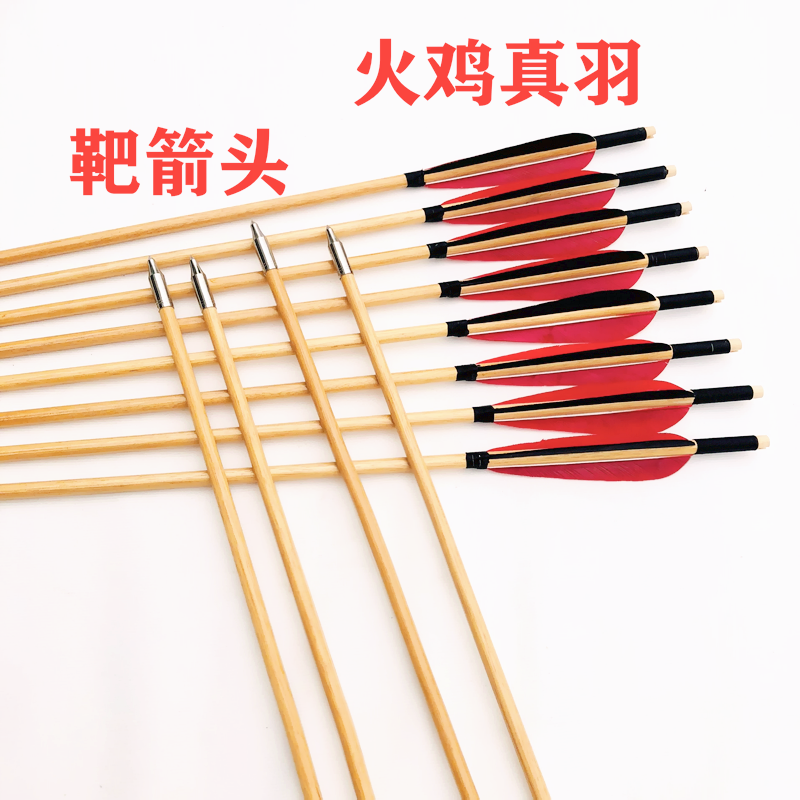 📚 传统反曲弓专用景区练习真羽木箭玻纤箭猎箭防爆杆响箭射击弓箭