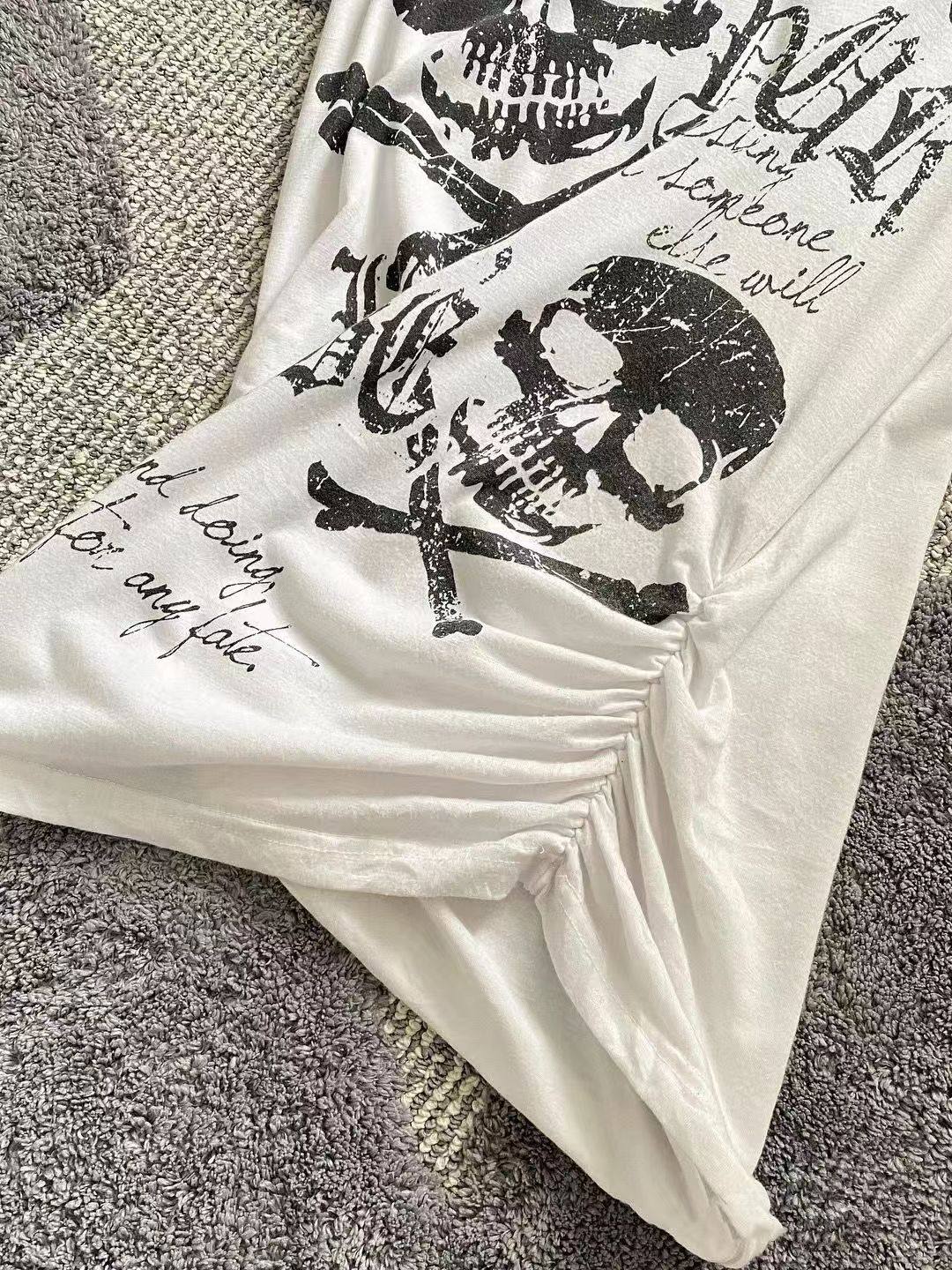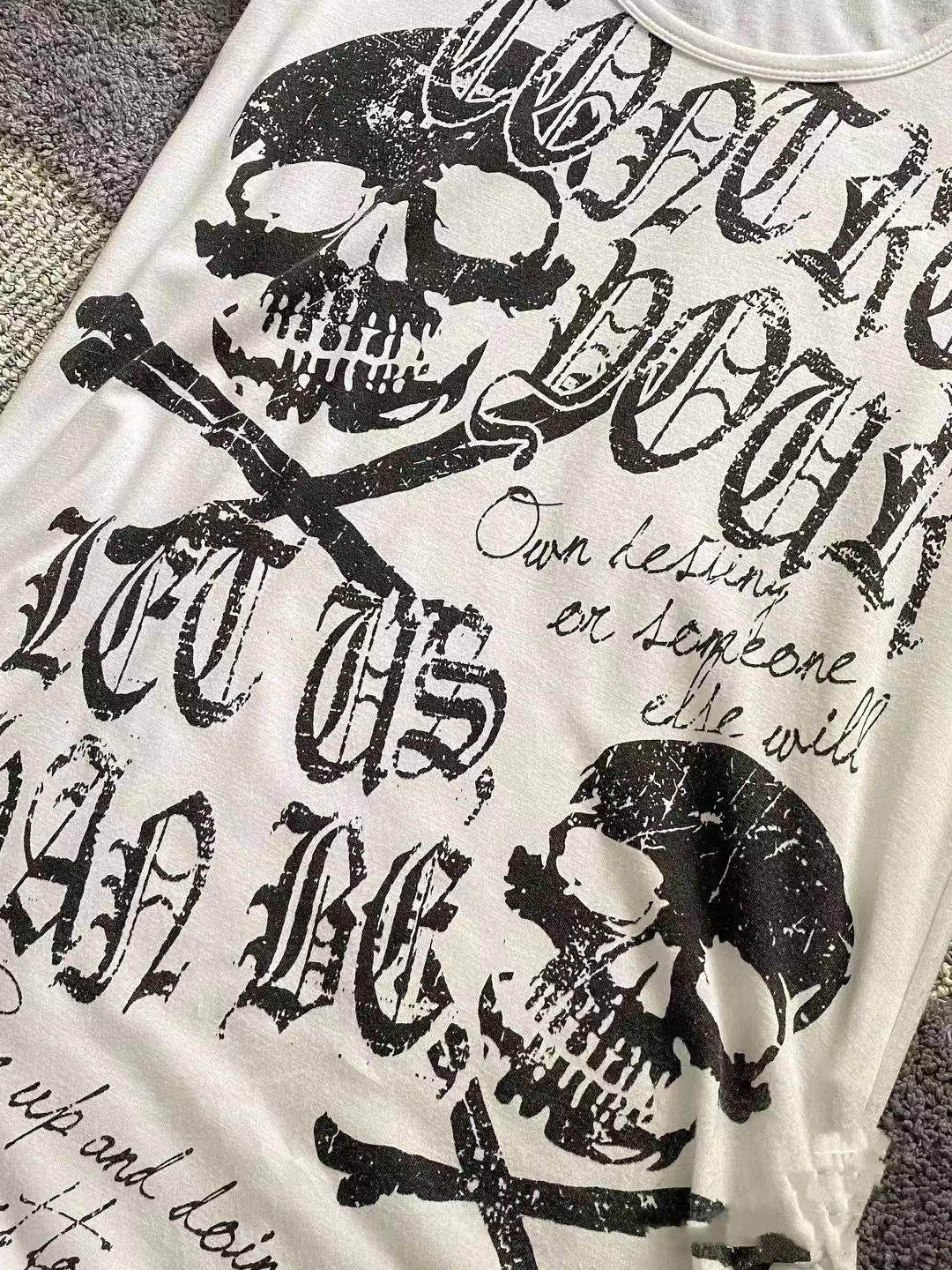📚 外贸vintage中古着收腰修身朋克摇滚短袖美式黑色骷髅头女上衣T恤