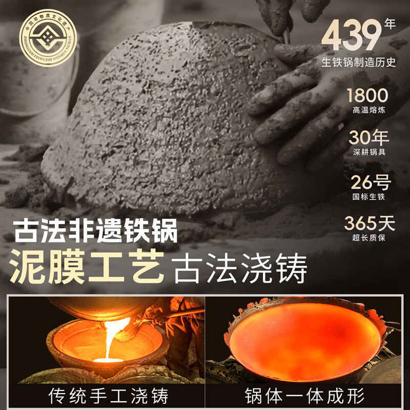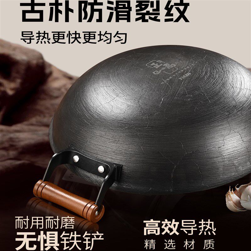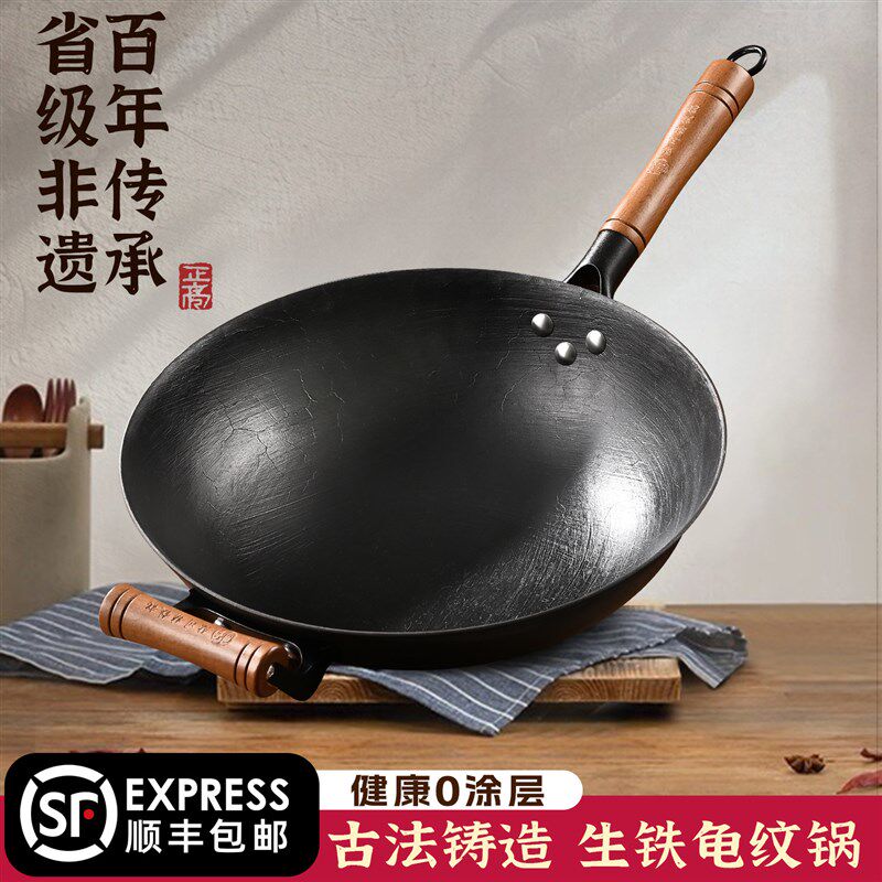 📚 精选陆川龟纹生铁锅家用炒菜锅省级非遗传统老式铸铁锅无涂层不粘