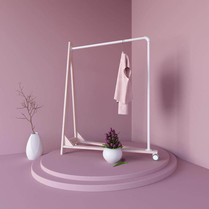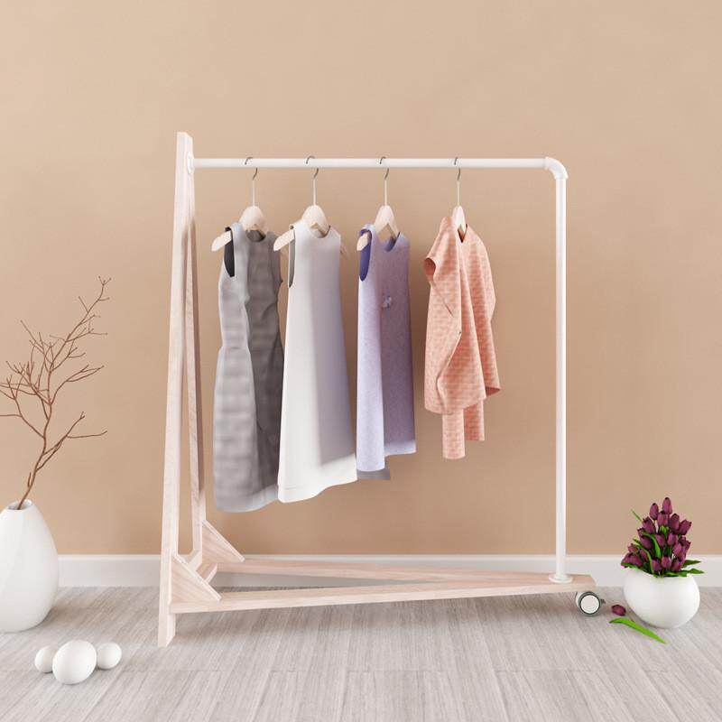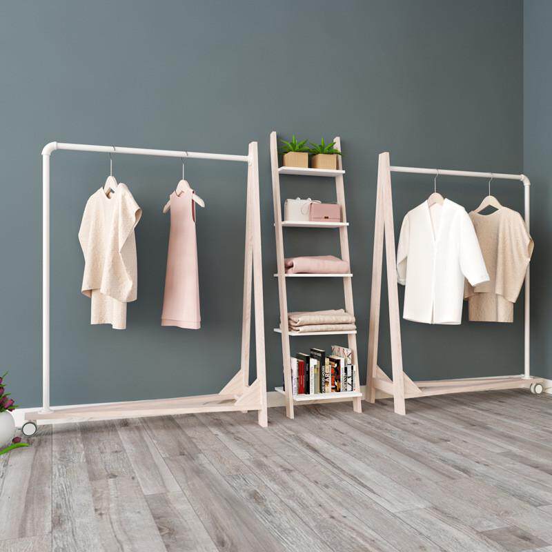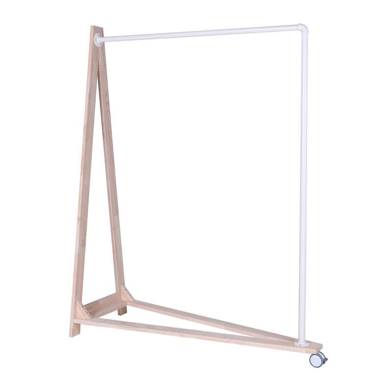 📚 高档服装店展示衣架实木铁管A形单边落地滚轮居家酒店商场陈列架