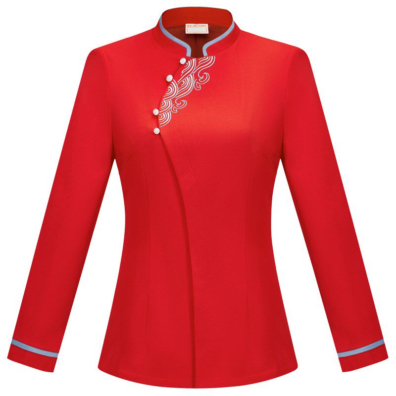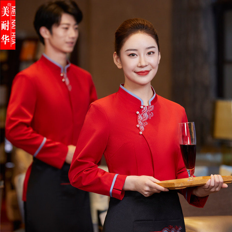 📚 高端中餐厅服务员工作服长袖酒店餐饮饭店宴会酒楼工服秋冬装加厚