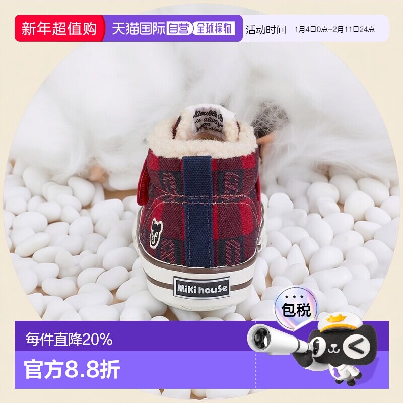 📚 日本直邮日潮 MIKIHOUSE复古格纹加绒棉鞋冬季学步鞋二段三段