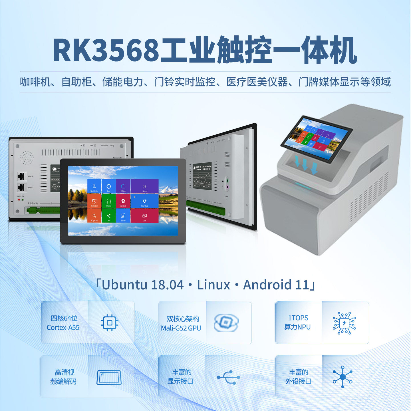 📚 10.1寸RK3568水平安装ubuntu18安卓android11工业触控linux一体机