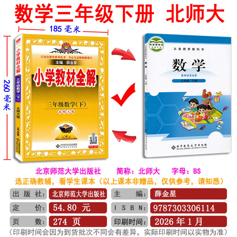28¥ MF287 R2HnU9tNnbz¥ https://m.tb.cn/h.7GWg4UG 2026版 小学教材全解数学三年级下册3下北师大版北师版 BS北京师大版 课本同步教材解析解读讲解学霸笔记单元测试卷辅导书现货 --------------------- 【原售价】54.8元 【现售价】43.8元。