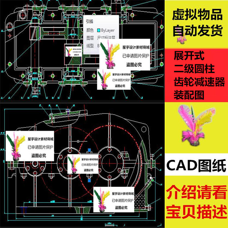📚 展开式二级圆柱齿轮减速器装配图主视图,俯视图 侧视图CAD图纸