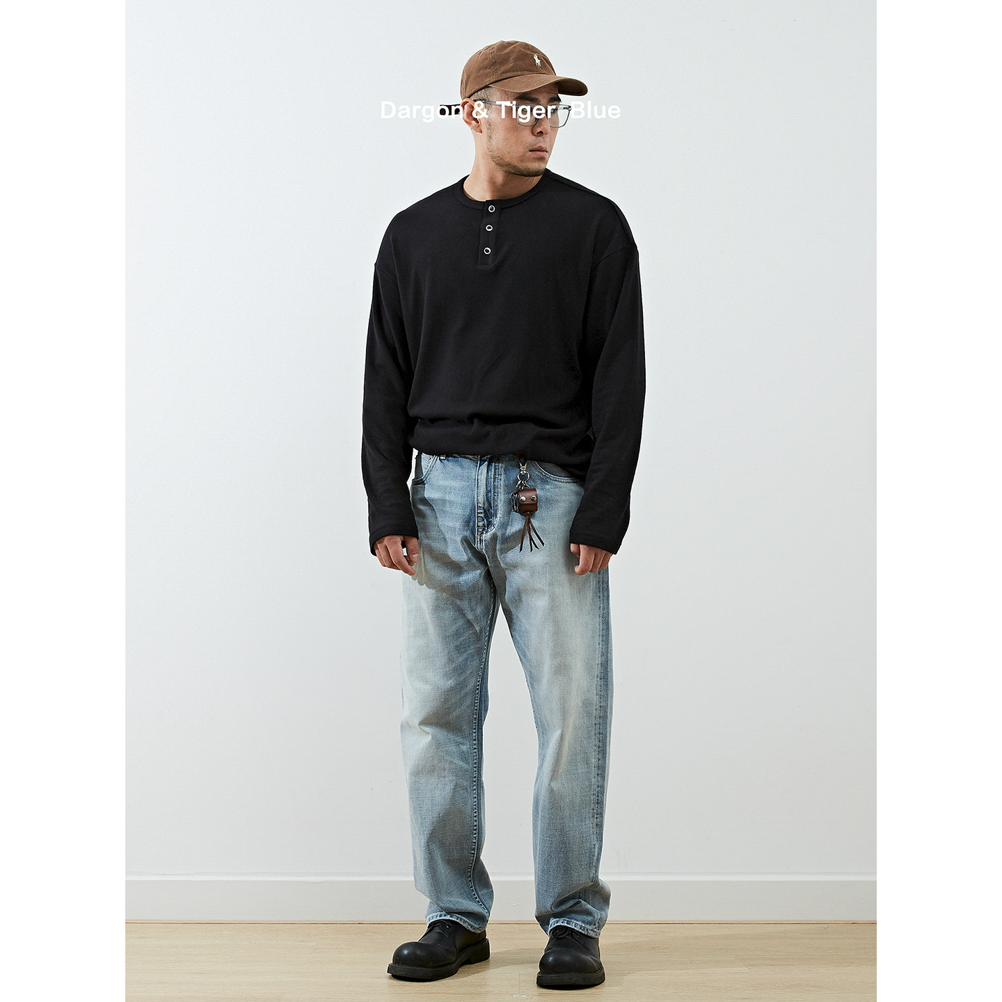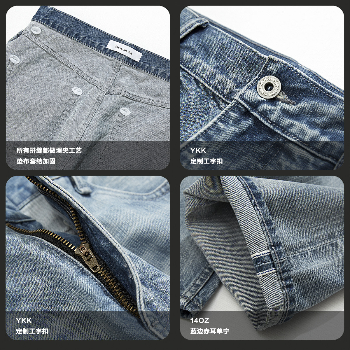 📚 高品质14OZ赤耳 CleanFit浅蓝 浅色501复古宽松直筒牛仔裤男 潮牌