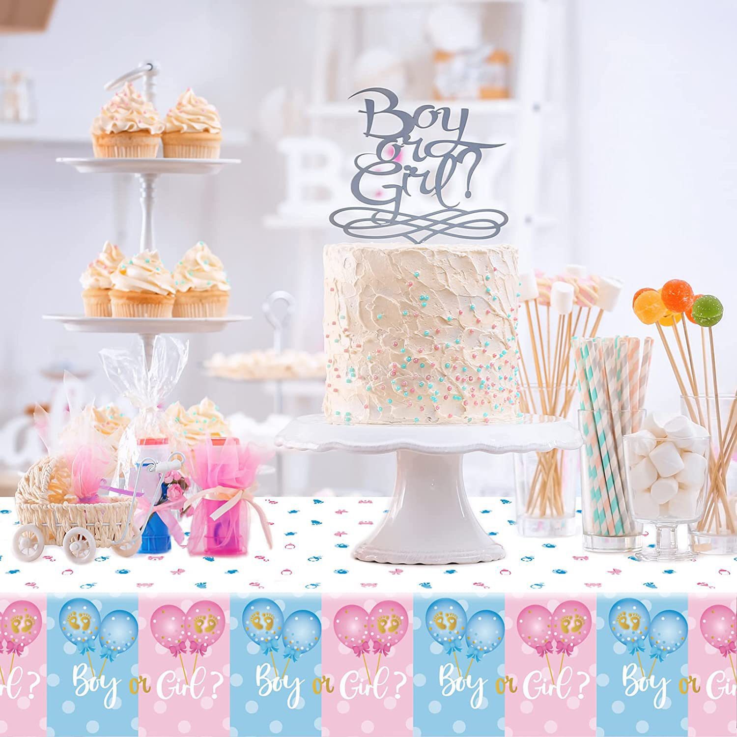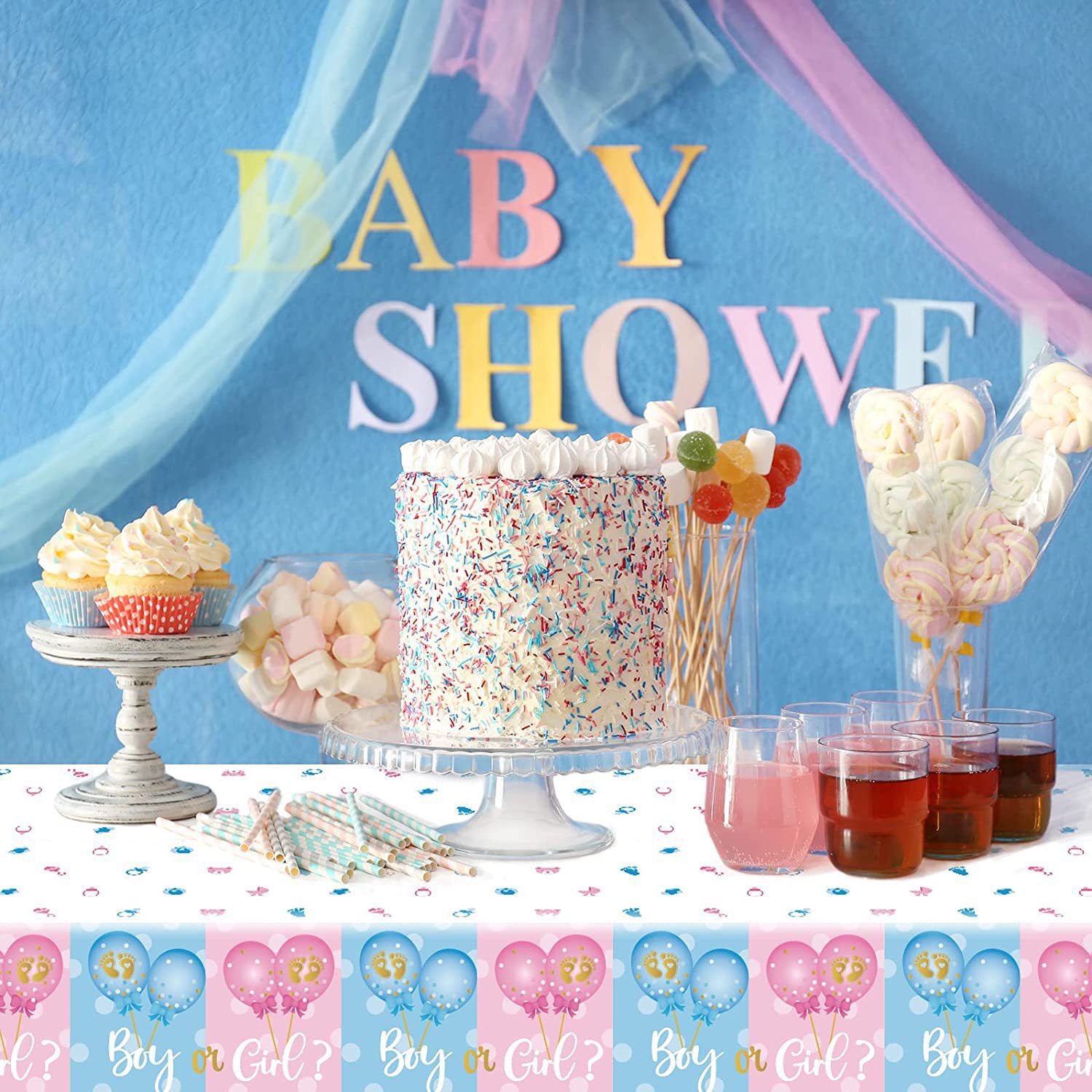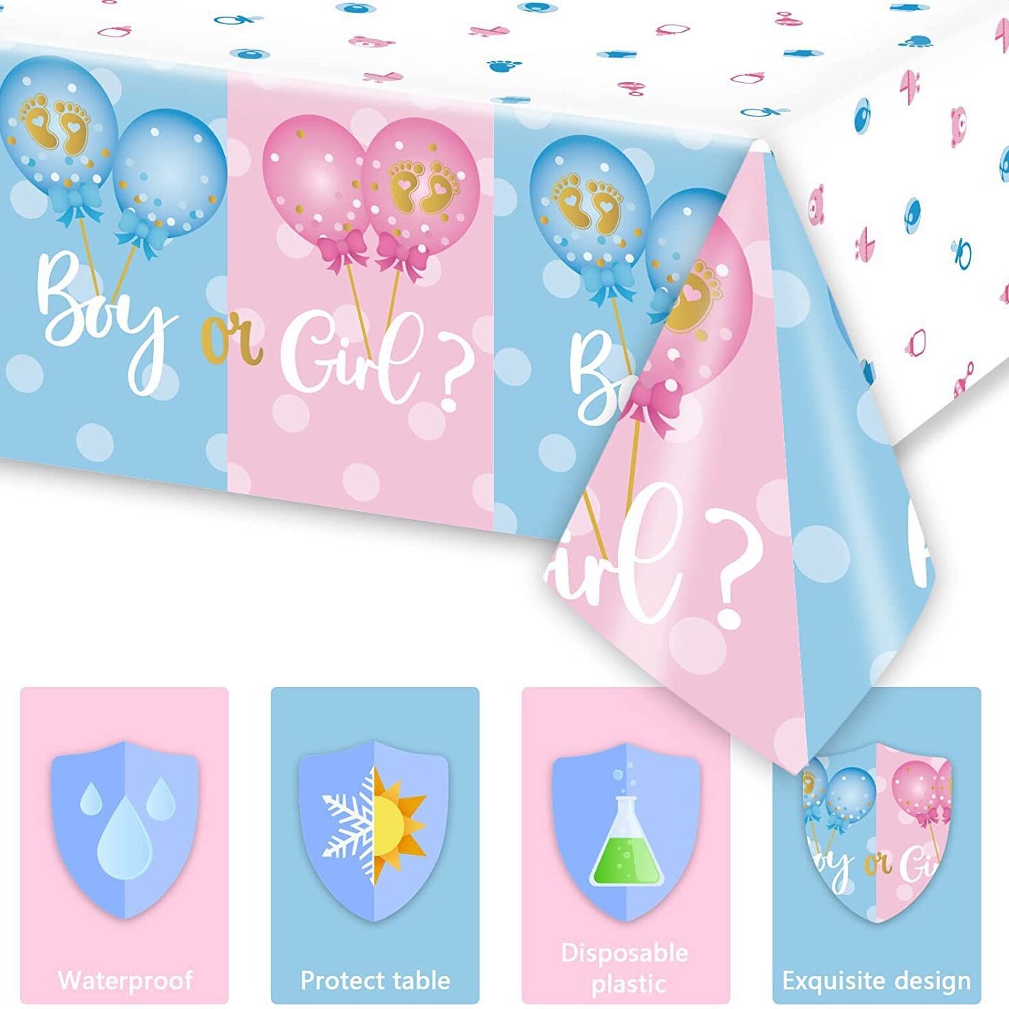 📚 BOY OR GIRL 宝宝性别揭示迎婴派对一次性防水桌布 GENDER REVEAL