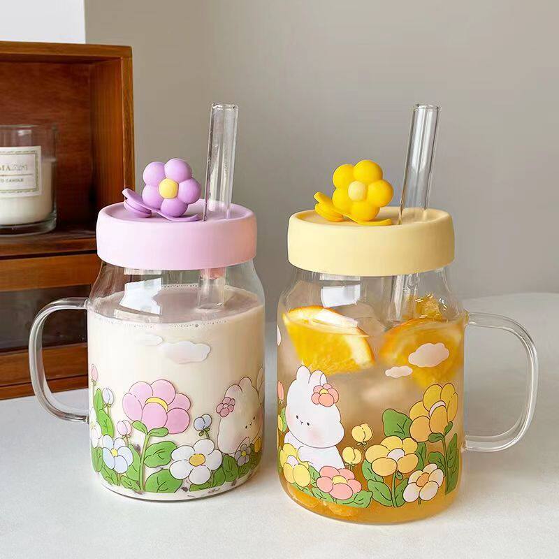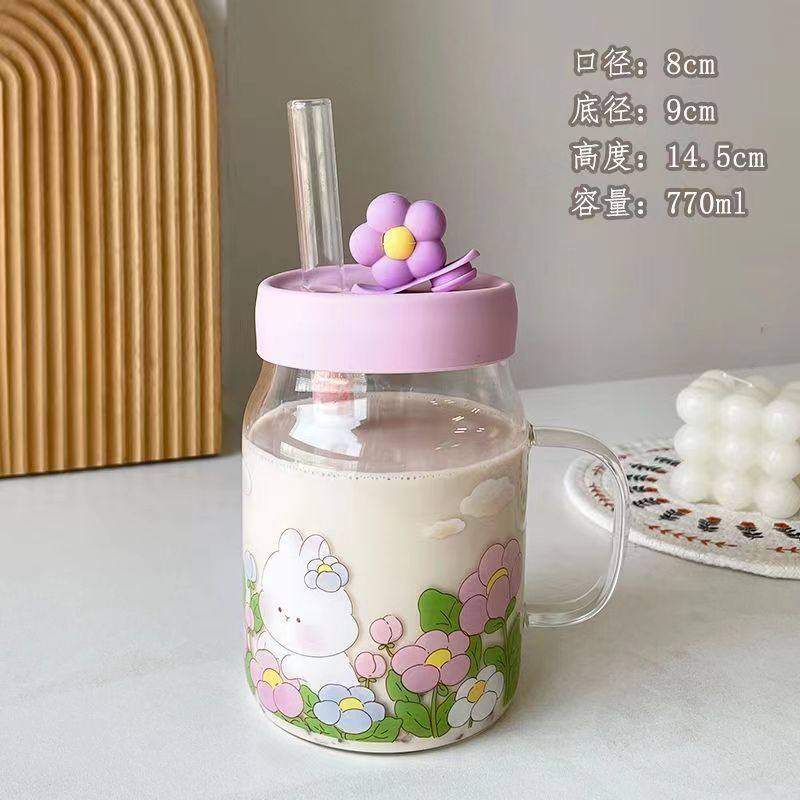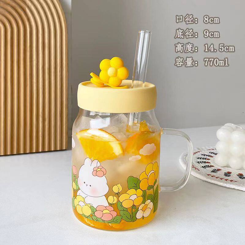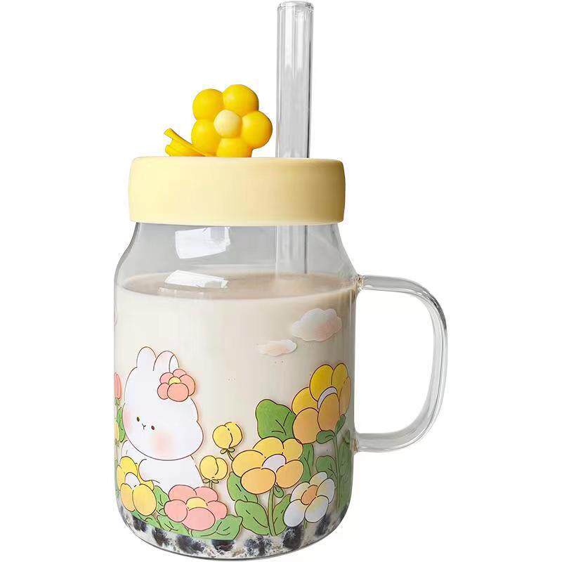 📚 高硼硅带把玻璃杯大容量加粗玻璃吸管可以吸珍珠椰果魔芋耐高温