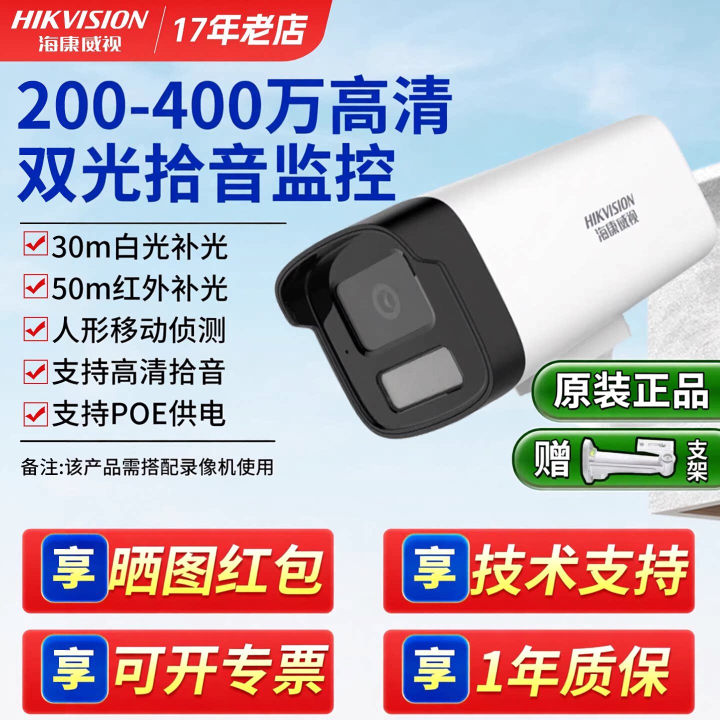 49¥ CZ321 JSQpUEFSnwf¥ https://m.tb.cn/h.i3UOdRA 海康威视200/300/400万PoE监控摄像头T12/B12/T13/B13/1245-LA --------------------- 【原售价】248元 【现售价】230元。