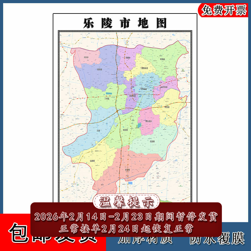 📚 乐陵市地图批零90cm防水墙贴新款高清现货山东省德州市彩色图片