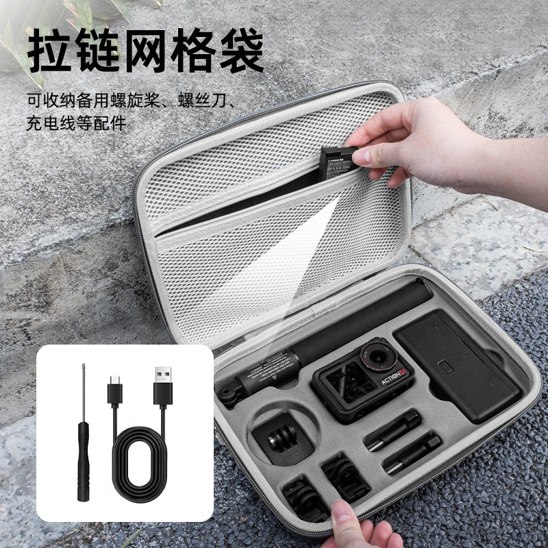 📚 REYGEAK适用DJI大疆action5pro收纳包便携灵眸osmo Action4/3运动相机背包全能畅拍套装硬壳保护配件盒防摔