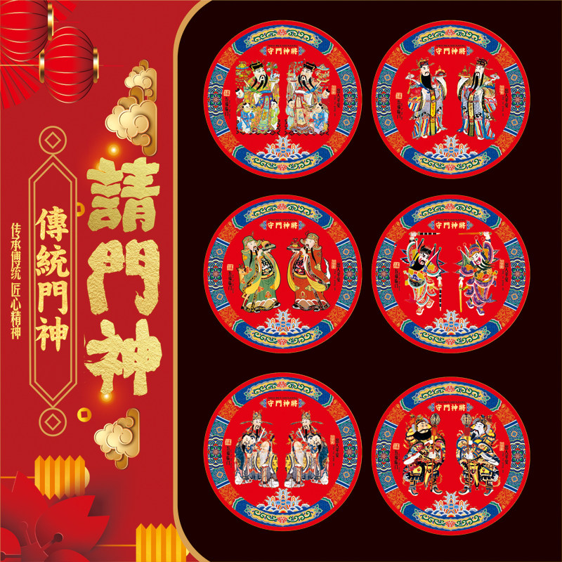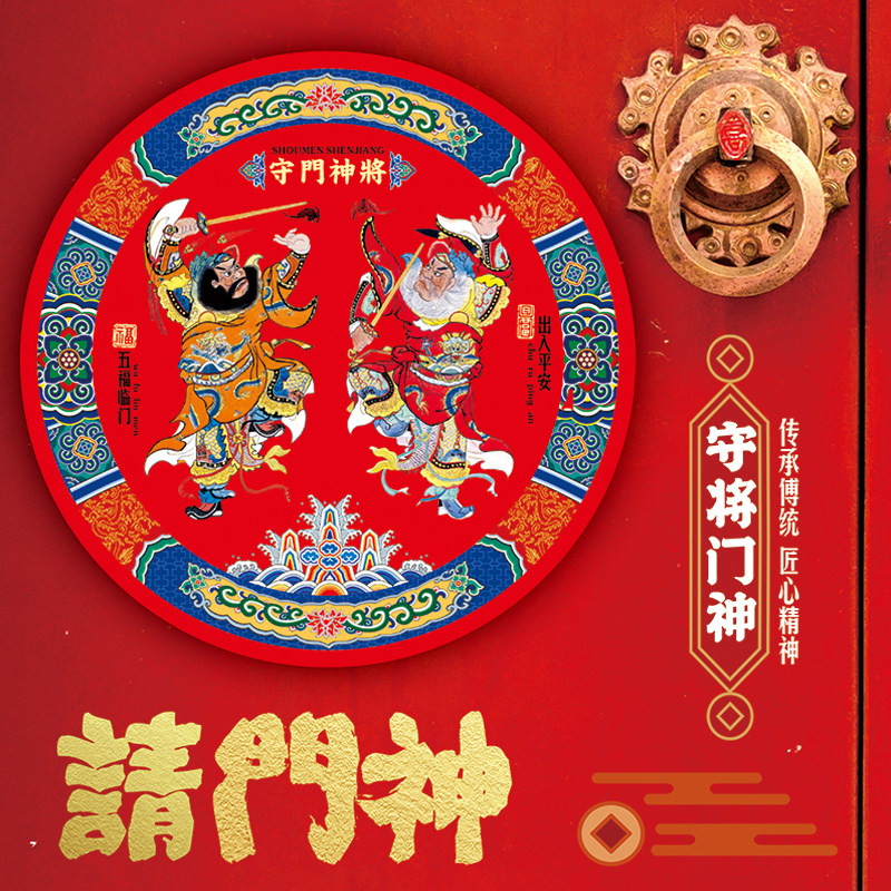 📚 圆形门神贴大门防盗门高档新年春节乔迁新居装饰年画贴纸单门门贴