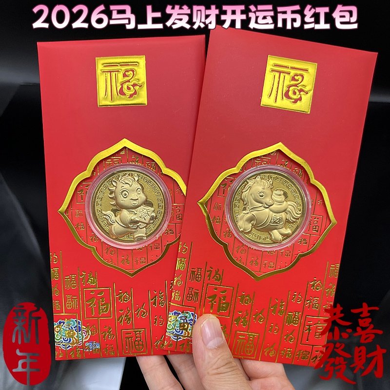 📚 2026马年马到成功开运金币招财钱母红包卡通生肖马贺岁压岁钱红包