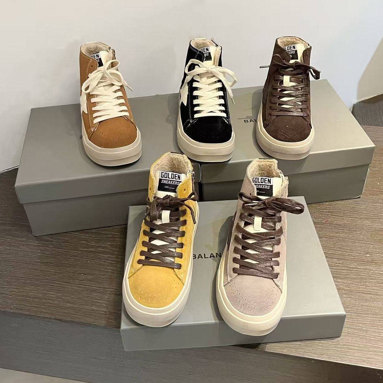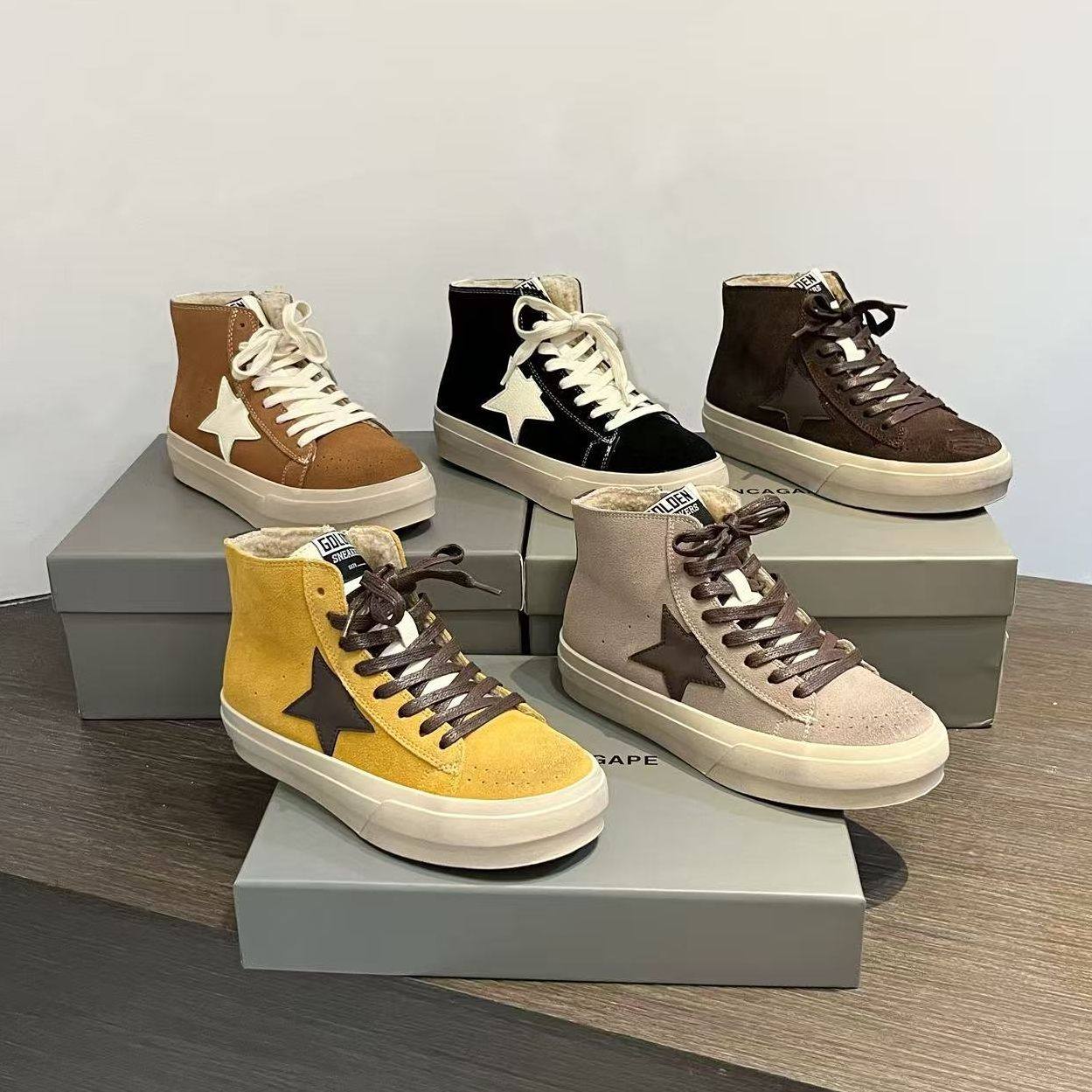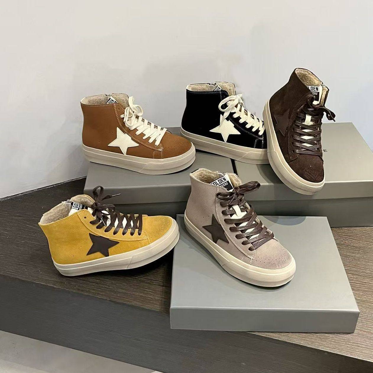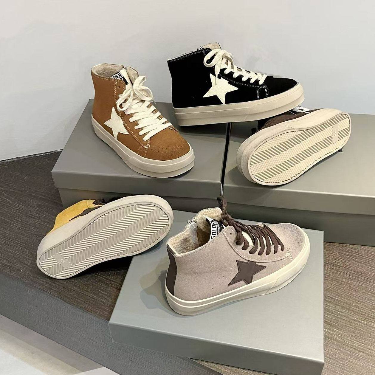 📚 韩版磨砂真皮系带星星做旧加绒脏脏高帮小脏鞋陈太太同款休闲女鞋