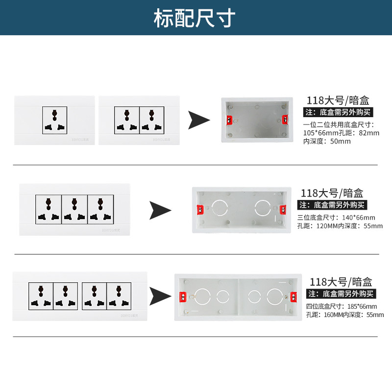 📚 118型暗装家用开关插座六孔十二孔墙壁一开三孔九孔多功能插老式
