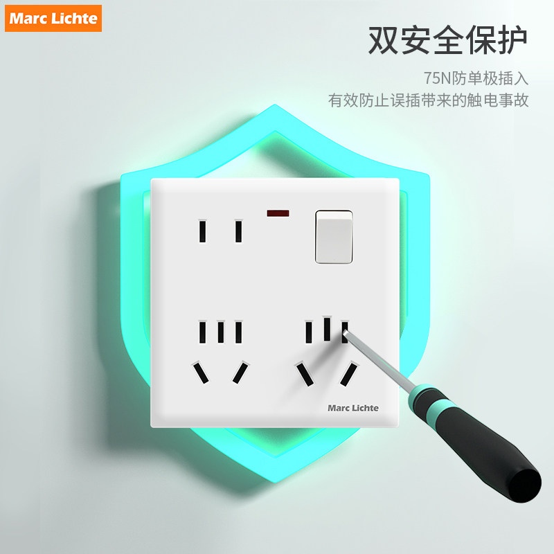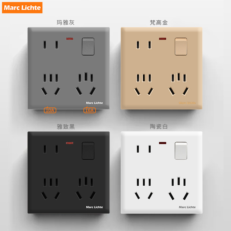 📚 明装开关插座一开十二孔10A+16A大功率厨房免底盒开关带灯插座